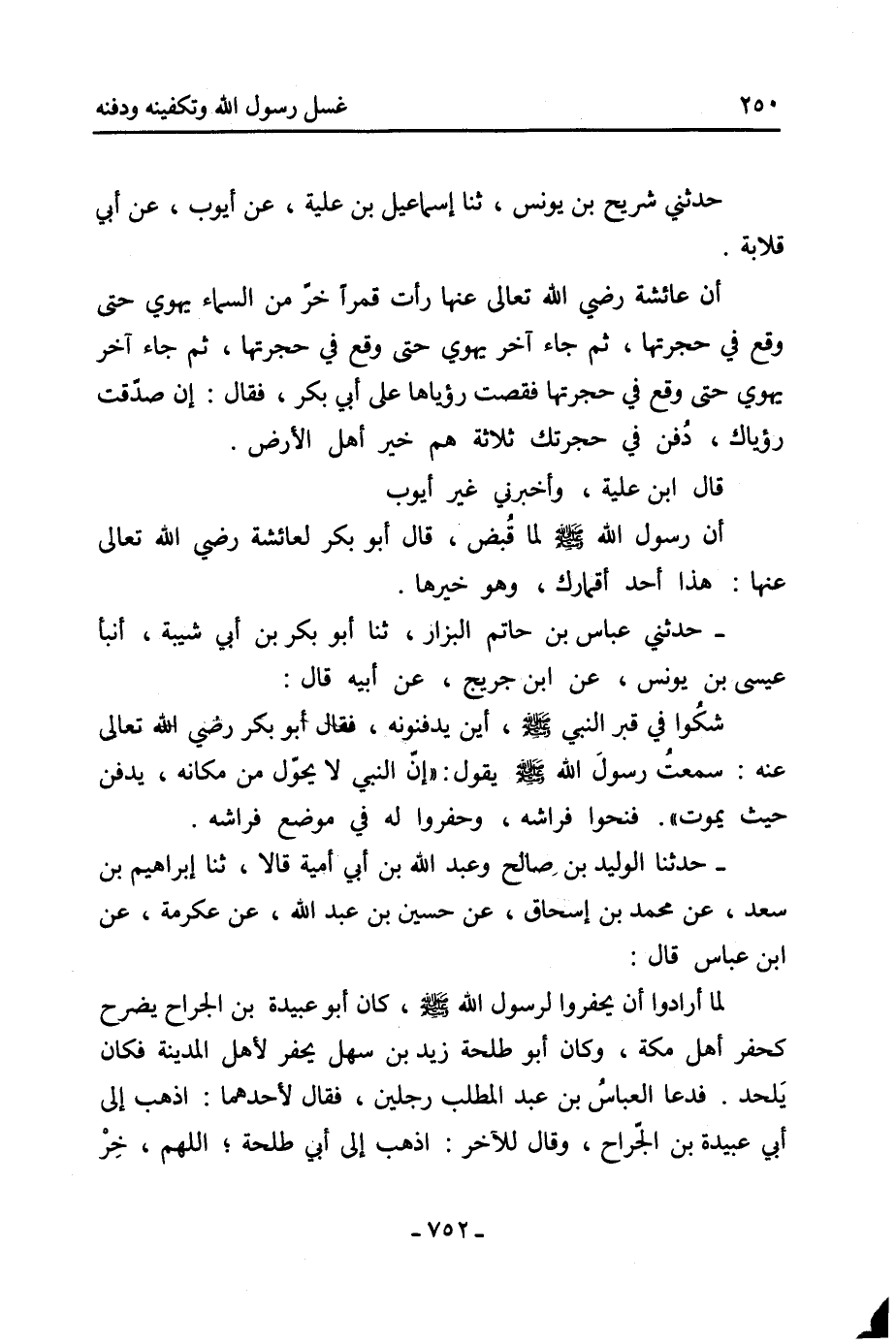 عَنِ الزُّهْرِيِّ قَالَ: احْتَمَلَ مُحَمَّدُ بْنُ أَبِي بَكْرٍ عَائِشَةَ، فَضَرَبَ عَلَيْهَا فُسْطَاطًا، فَوَقَفَ عليها (عليّ) فقال: [استفززت الناس وقد أقروا [1] حَتَّى قَتَلَ بَعْضُهُمْ بَعْضًا بِتَأْلِيبِكِ.] فَقَالَتْ: يَا بن أَبِي طَالِبٍ مَلَكْتَ فَأَسْجِحْ.