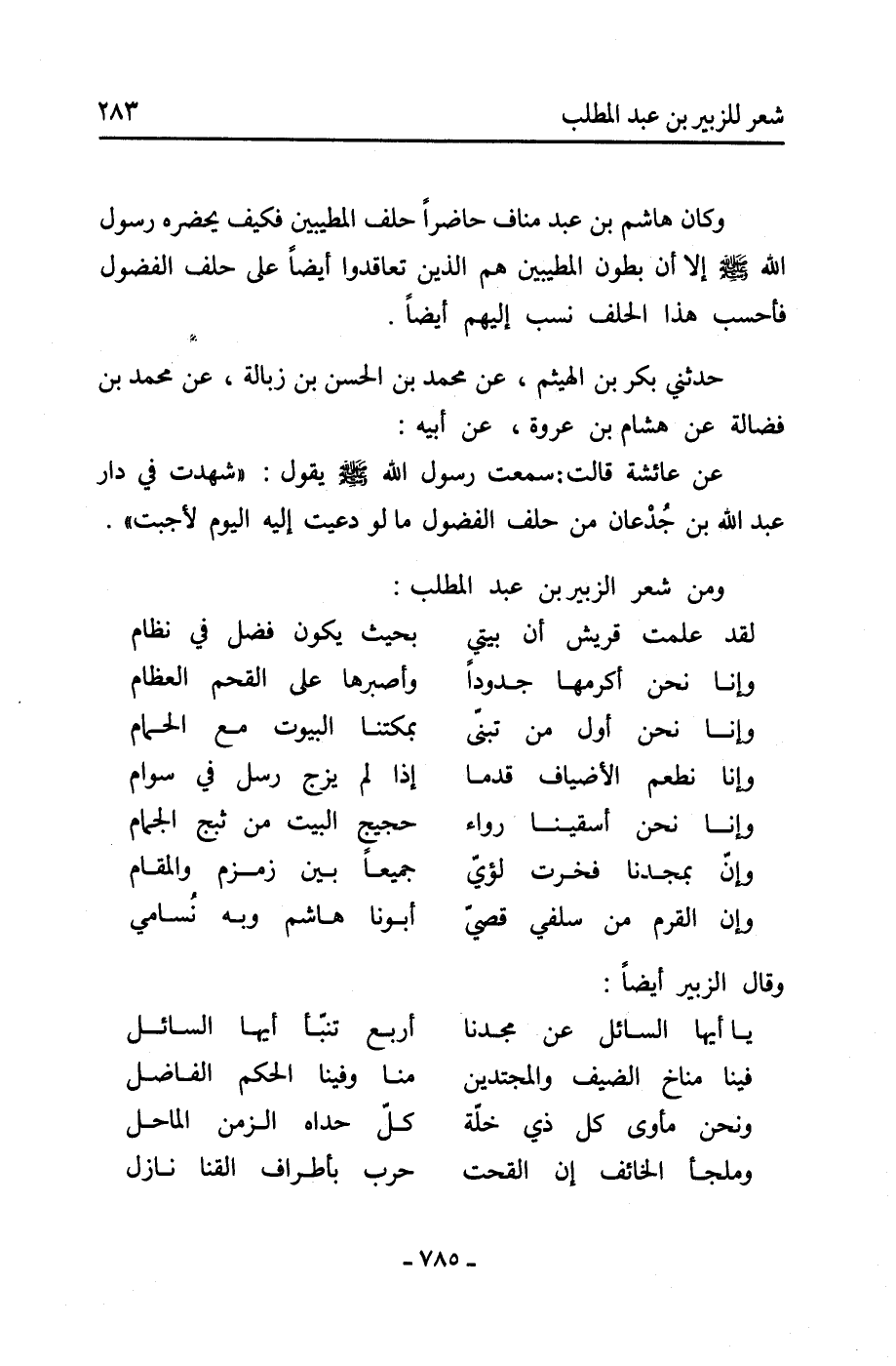 قال: وحدثني زيد بن حباب العكلي، اخبرني جويرية بن أسماء الضبعي حدثني عبد الوهاب ابن يحي بن عبد الله بن الزبير (قال:) أنبأنا أشياخنا: أن الفتنة وقعت وما رجل من قريش إلخ.