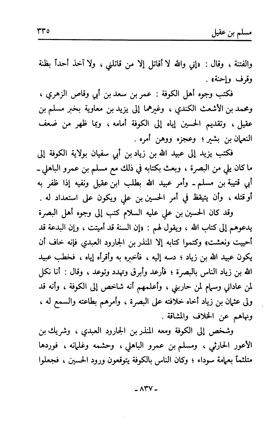 [2] وقريب منه جدا- بل عينه معنا- رواه نصر بن مزاحم في كتاب صفين ص 510 عن عمر بن سعد (الأسدي) عن أبي إسحاق الشيباني، ولكن رواه قبله ص 504 بسند آخر، وفيه زيادات كثيرة غير موجودة هنا.