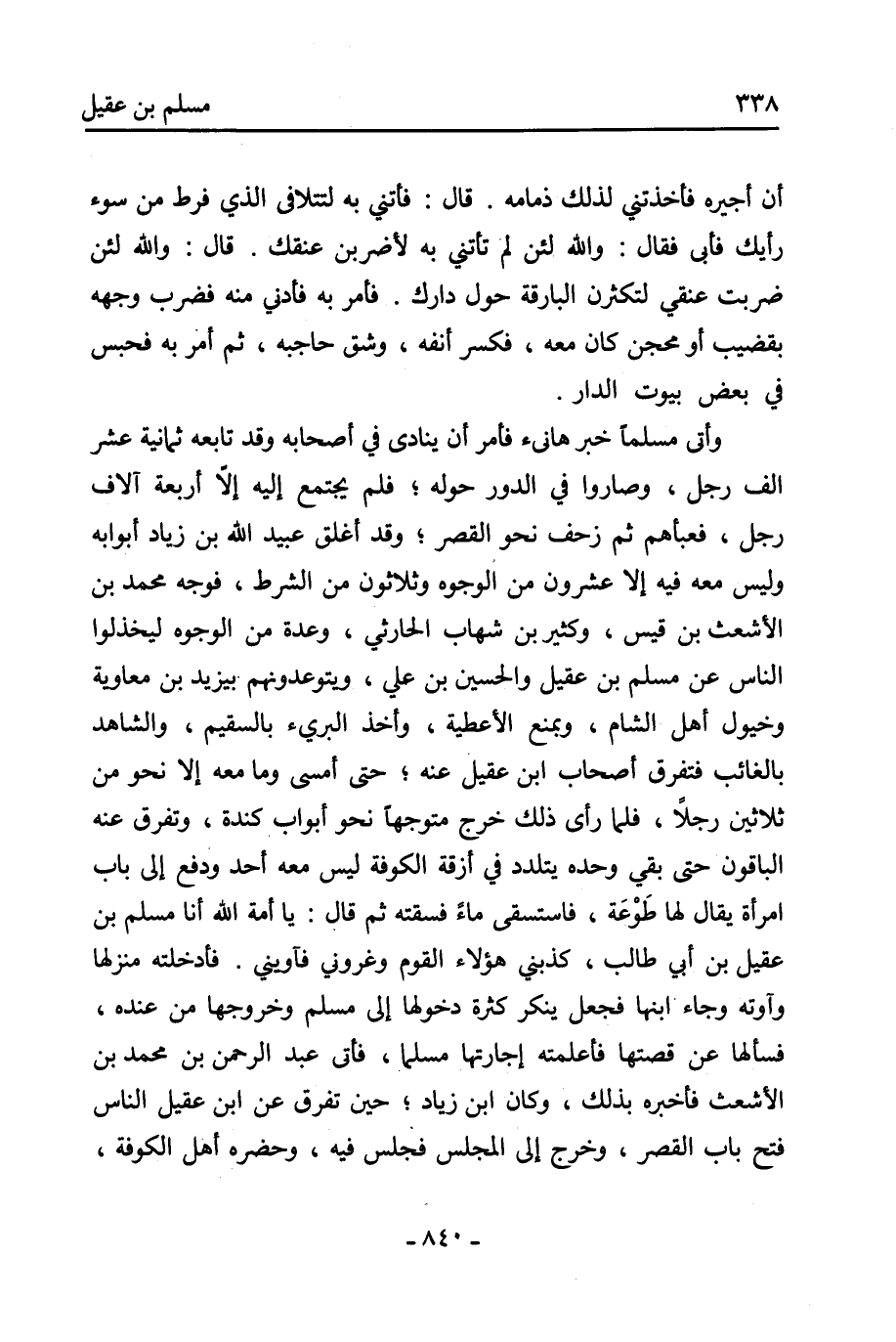 «409» حَدَّثَنِي عَبْدُ اللَّهِ بْنُ صَالِحِ بْنِ مُسْلِمٍ، حدثنا ابن كناسة (كذا) الأَسَدِيُّ عَنْ إِسْمَاعِيلَ بْنِ مُجَالِدٍ، عَنْ أَبِيهِ، عَنْ الشَّعْبِيِّ قَالَ: لَمَّا اجْتَمَعَ عَلِيٌّ وَمُعَاوِيَةُ عَلَى أَنْ يُحَكِّمَا رَجُلَيْنِ اخْتَلَفَ النَّاسُ عَلَى عَلِيٍّ فَكَانَ عِظَمُهُمْ وَجُمْهُورُهُمْ مُقِرِّينَ بِالتَّحْكِيمِ رَاضِينَ به، وكانت فرقة منهم- وهم زهاء أربعة آلاف من ذوي بصائرهم وَالْعُبَّادِ مِنْهُمْ- مُنْكِرَةً لِلْحُكُومَةِ، وَكَانَتْ فِرْقَةٌ مِنْهُمْ وَهُمْ قَلِيلٌ مُتَوَقِّفِينَ، فَأَتَتِ الْفِرْقَةُ الْمُنْكِرَةُ عَلِيًّا فَقَالُوا: عُدْ إِلَى الْحَرْبِ- وَكَانَ عَلِيٌّ يُحِبُّ ذَلِكَ- فَقَالَ الَّذِينَ رَضُوا بِالتَّحْكِيمِ: وَاللَّهِ مَا دَعَانَا الْقَوْمُ إِلا إِلَى حَقٍّ وَإِنْصَافٍ وَعَدْلٍ. وكان الأشعث ابن قَيْسٍ وَأَهْلُ الْيَمَنِ أَشَدَّهُمْ مُخَالَفَةً لِمَنْ دَعَا إِلَى الْحَرْبِ، فَقَالَ عَلِيٌّ لِلَّذِينَ دَعَوْا إِلَى الْحَرْبِ: [يَا قَوْمُ قَدْ تَرَوْنَ خِلافَ أَصْحَابِكُمْ وَأَنْتُمْ قَلِيلٌ فِي كَثِيرٍ، وَلَئِنْ عُدْتُمْ إِلَى الحرب ليكوننّ