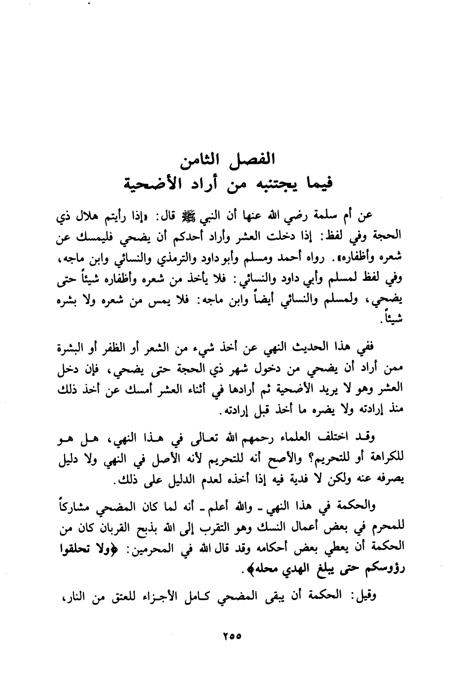الفصل الثامن فيما يجتنبه من أراد الأضحية