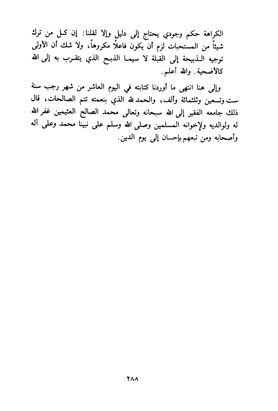 قال ذلك جامعه الفقير إلى الله سبحانه محمد الصالح العثيمين، غفر الله له ولوالديه ولإخوانه المسلمين، وصلى الله وسلم على نبينا محمد، وعلى آله وأصحابه، ومن تبعهم بإحسان إلى يوم الدين.