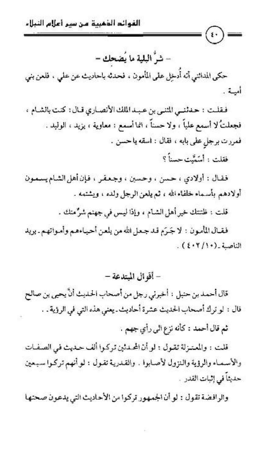 فقال المأمون: لا جَرم قد جعل الله من يلعن أحياءهم وأمواتهم يريد الناصبة (10/ 402).