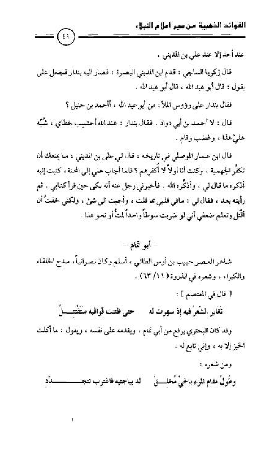 قال: لا أحمد بن أبي داود، فقال بندار: عند الله أحتسب خطاي، شبَّه علي هذا وغضب وقام.
