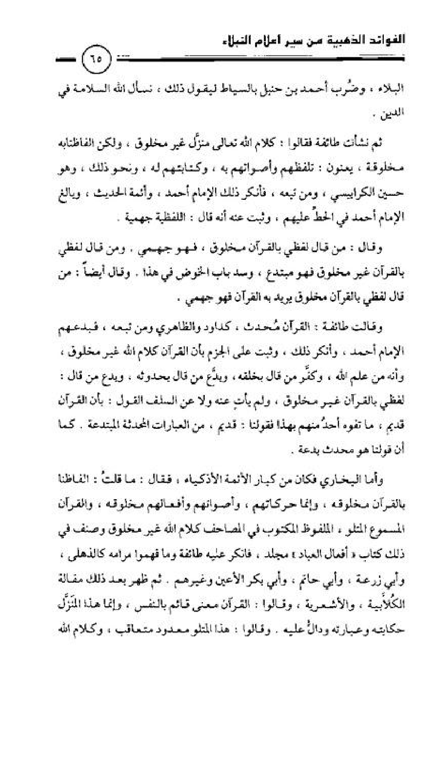 البلاء، وضُرب أحمد بن حنبل بالسياط ليقول ذلك، نسأل الله السلامة في الدين.