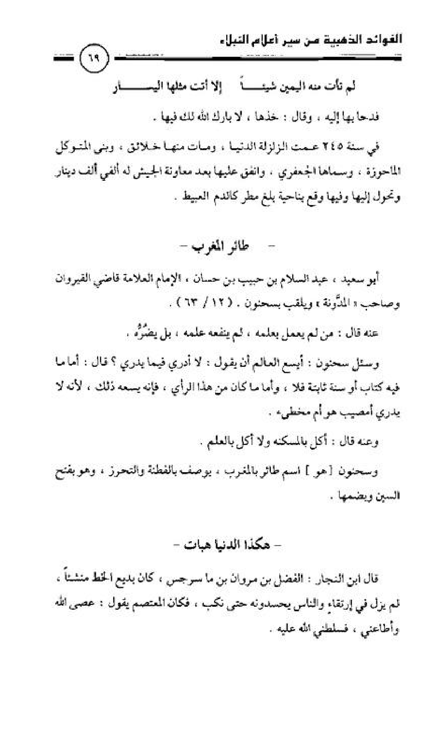 أبو سعيد، عبد السلام بن حبيب بن حسان، الإمام العلامة قاضي القيروان وصاحب "المدونة" ويلقب بسحنون (12/ 63).