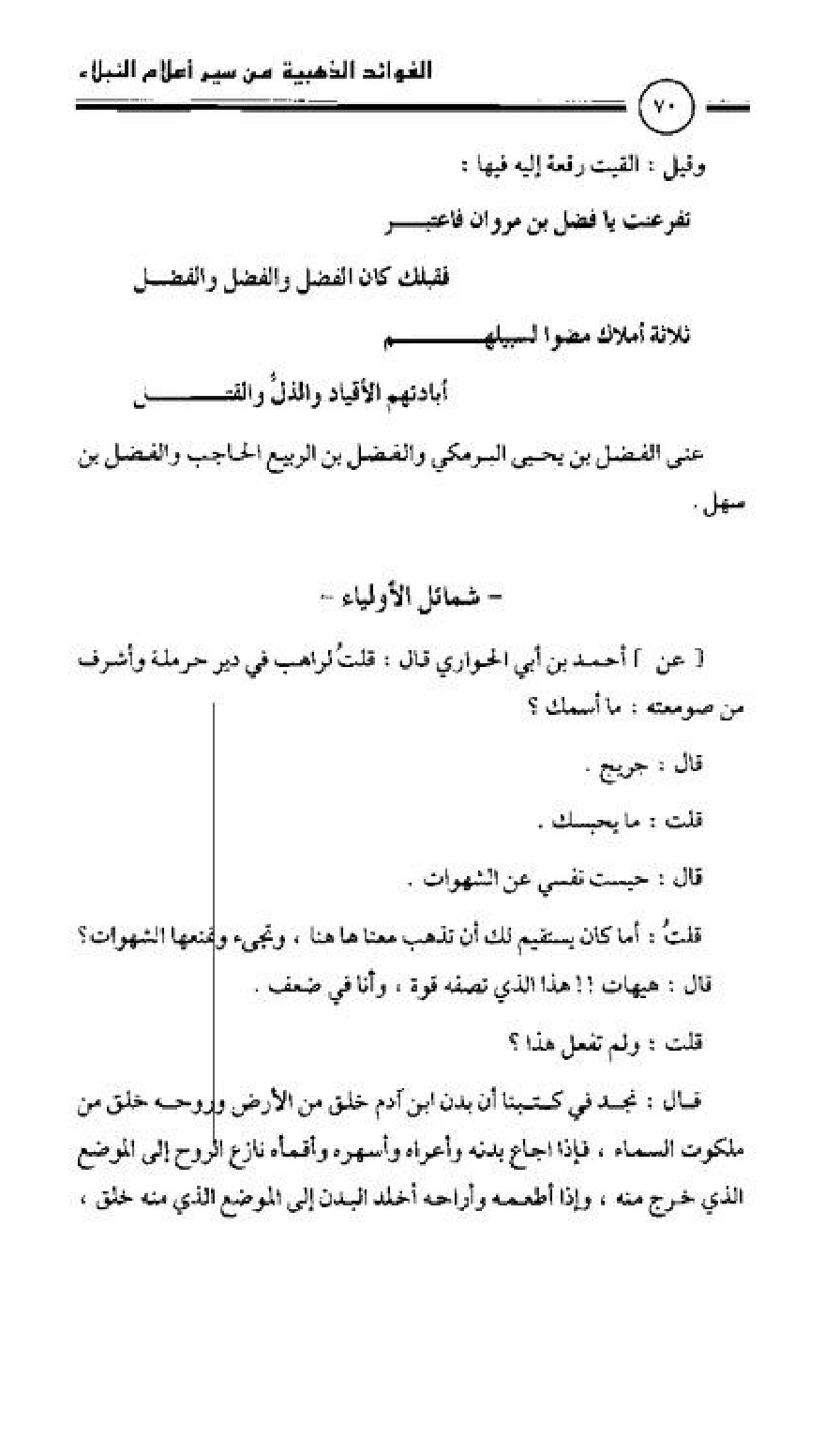 عن الفضل بن يحيى البرمكي والفضل بن الربيع الحاجب والفضل بن سهل.