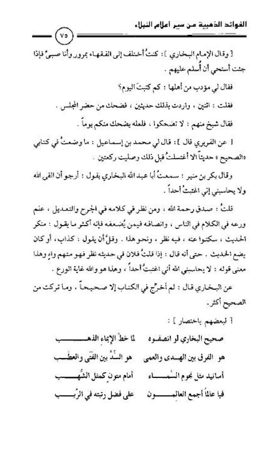 صحيح البخاري لو أنصفوه ... لما خط إلا بماء الذهب