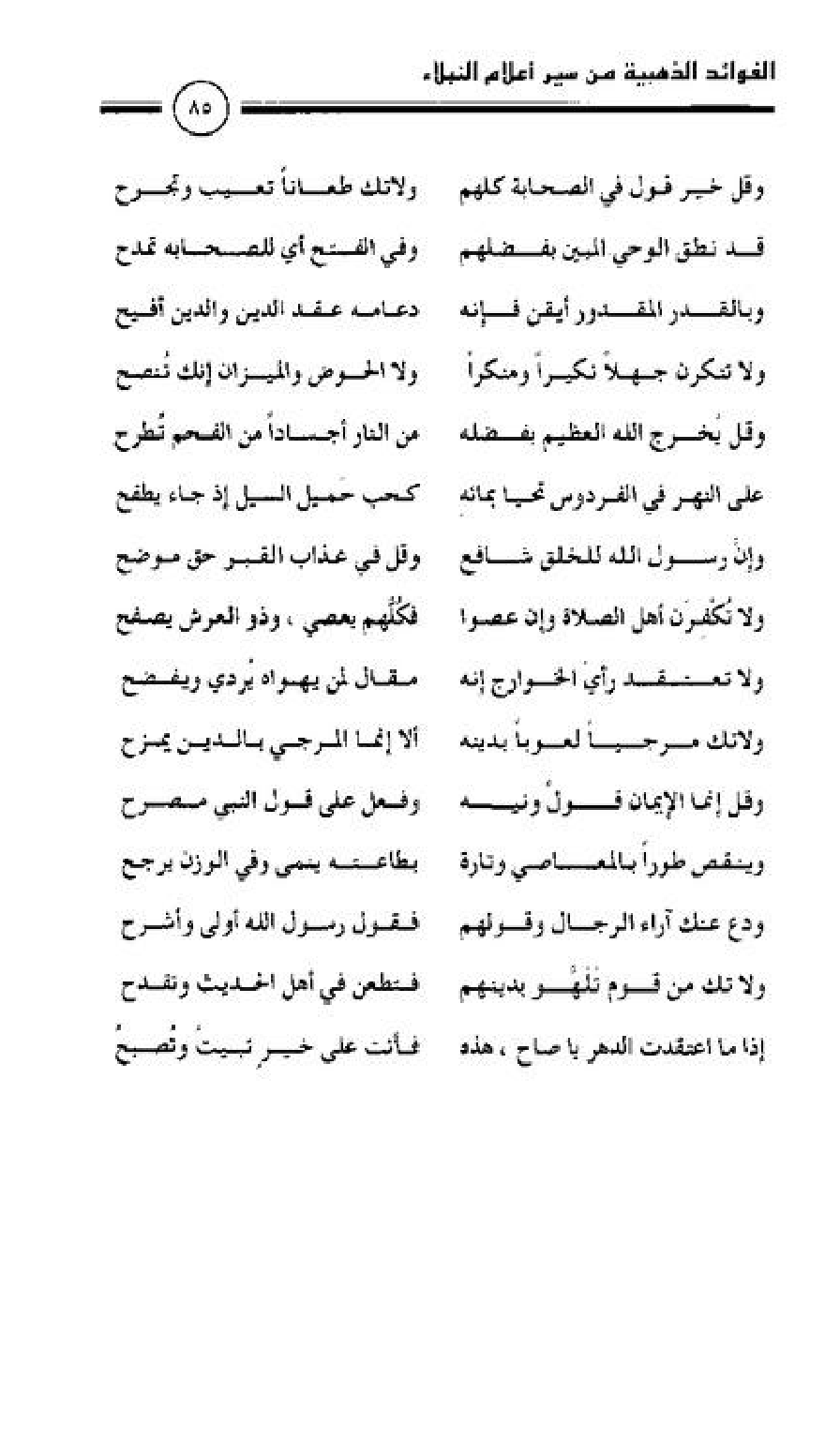 وقل خير قول في الصحابة كلهم ... ولاتك طعانًا تعيب وتجرح
