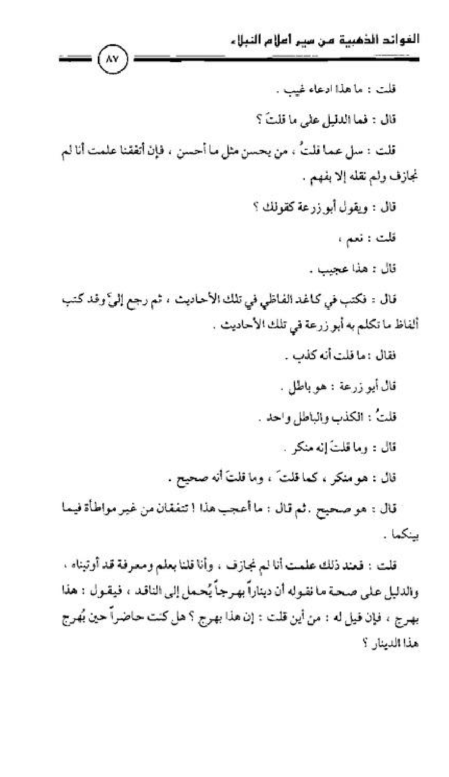 قال: فكتب في كاغد ألفاظي في تلك الأحاديث، ثم رجع إلي وقد كتب ألفاظ ما تكلم به أبو زرعة في تلك الأحاديث.