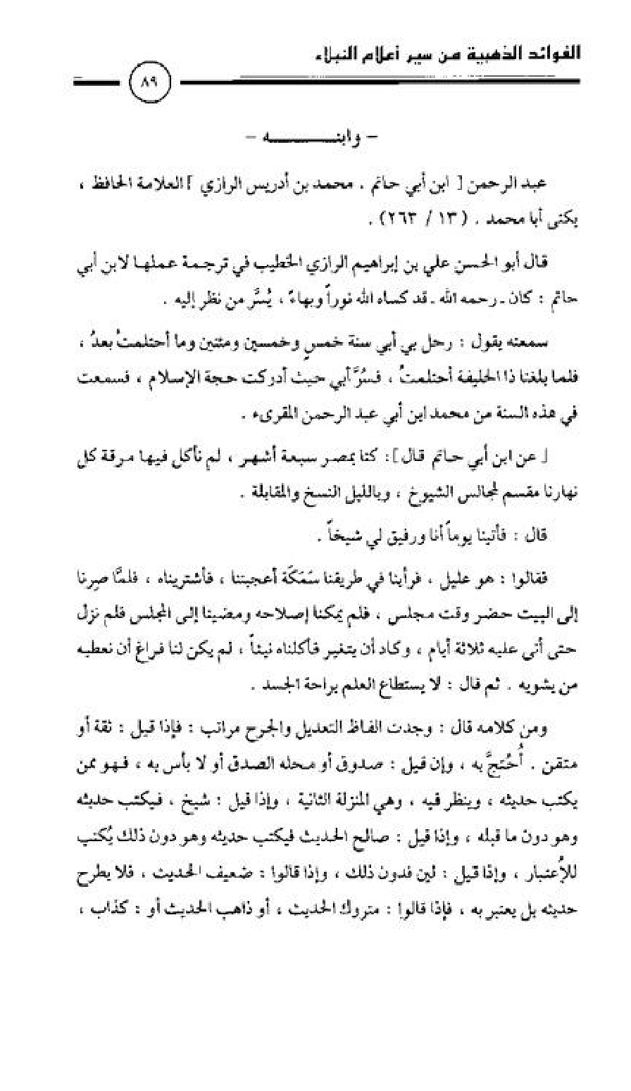 عبد الرحمن ابن أبي حاتم، محمد بن إدريس الرازي العلامة الحافظ، يكنى أبا محمد (13/ 263).