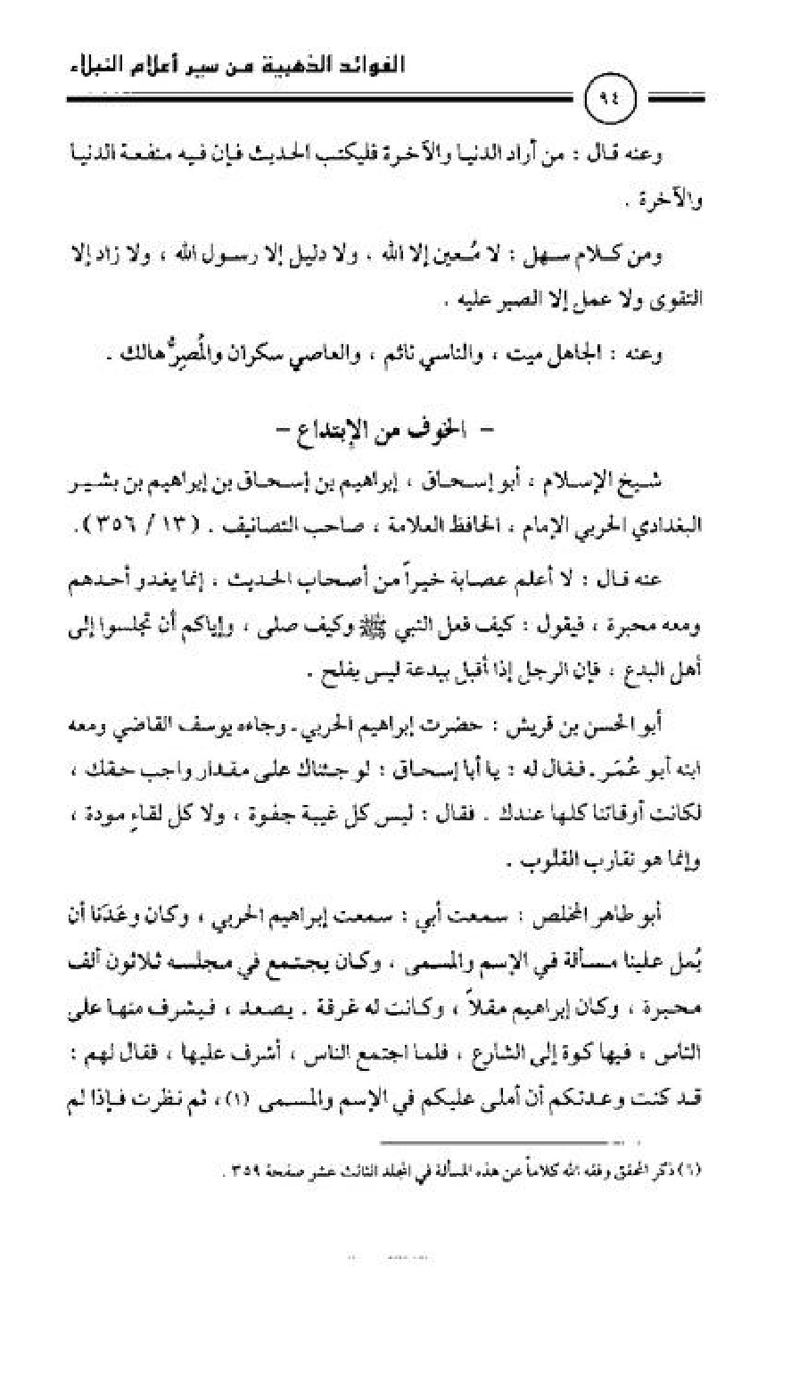 شيخ الإسلام، أبو إسحاق إبراهيم بن إسحاق بن إبراهيم بن بشير البغدادي الحربي الإمام، الحافظ العلامة، صاحب التصانيف (13/ 356).
