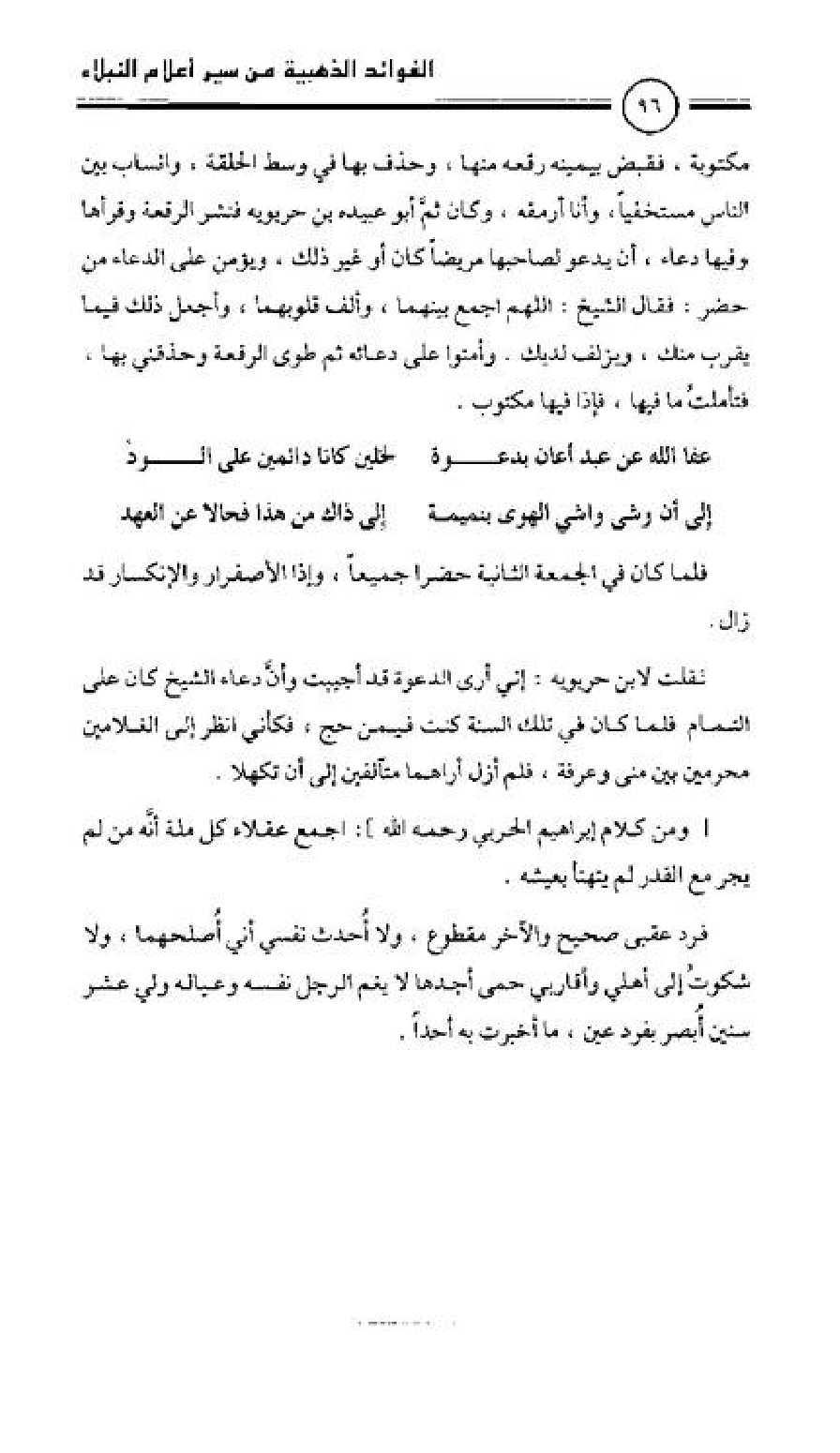 ومن كلام إبراهيم الحربي رحمه الله: أجمع عقلاء كل ملة أنه من لم يجر مع القدر لم يتهنأ بعيشه.