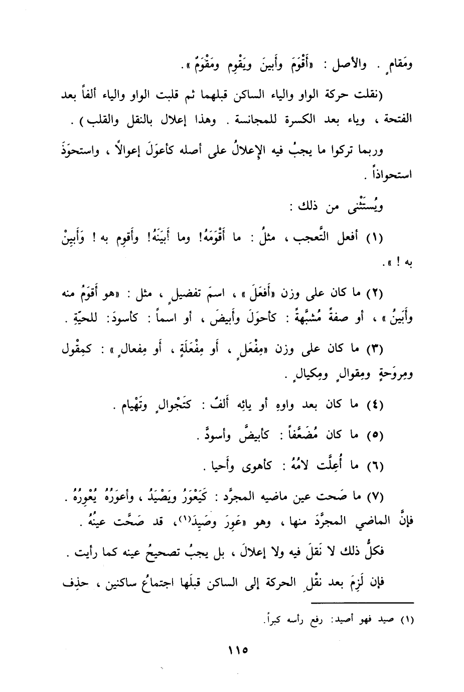 (1) أفعل التَّعجب، مثلُ ما أَقوَمَهُ! وما أَبينَهُ! وأَقوِم به! وأَبيِنْ به! ".