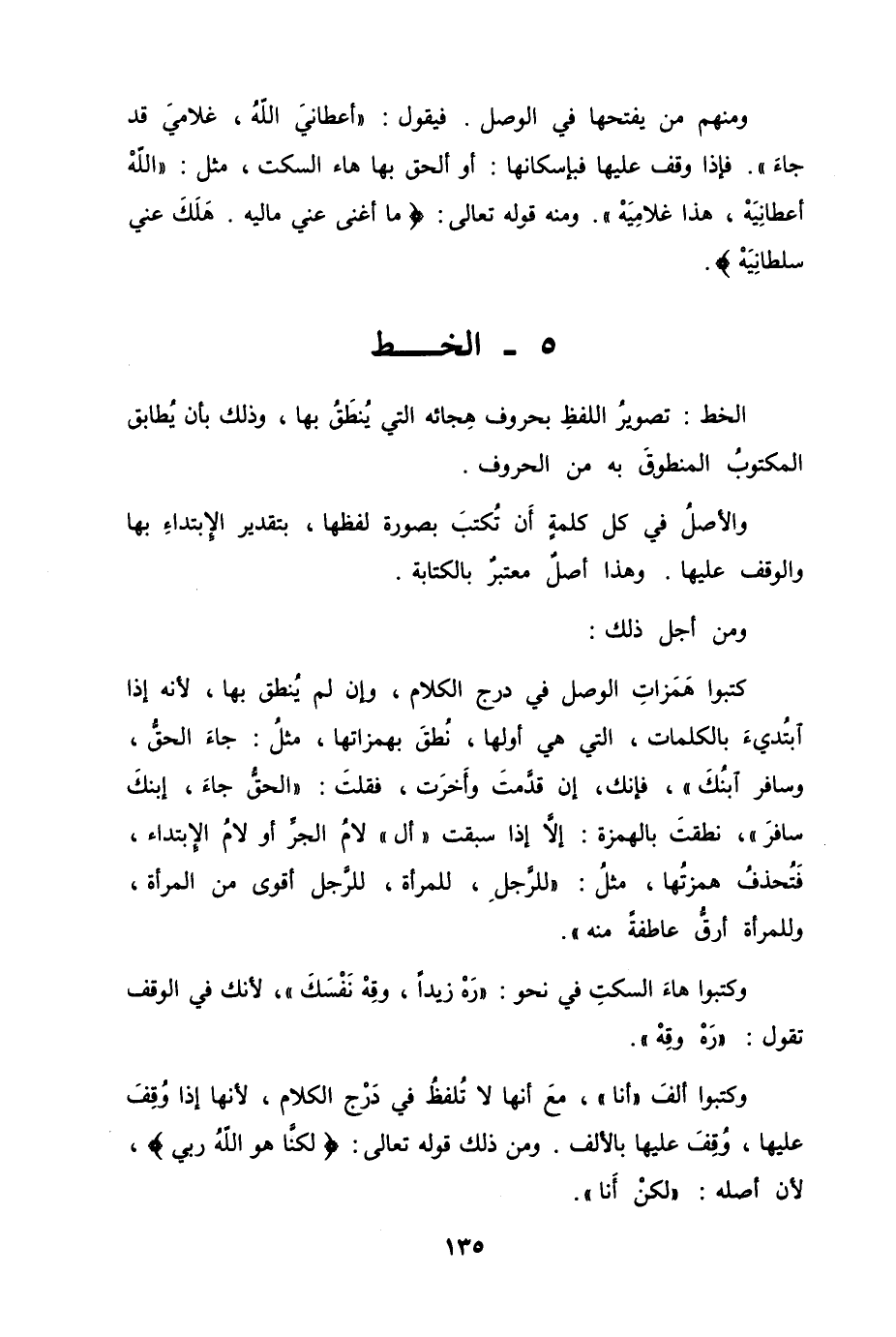 وكتبوا ألفَ "أنا"، معَ أنها لا تُلفظُ في دَرْج الكلام، لأنها إذا وُقِفَ عليها، وُقِفَ عليها بالألف. ومن ذلك قوله تعالى {لكنَّا هو اللهُ ربي} ، لأن اصله "لكنْ أَنا".
