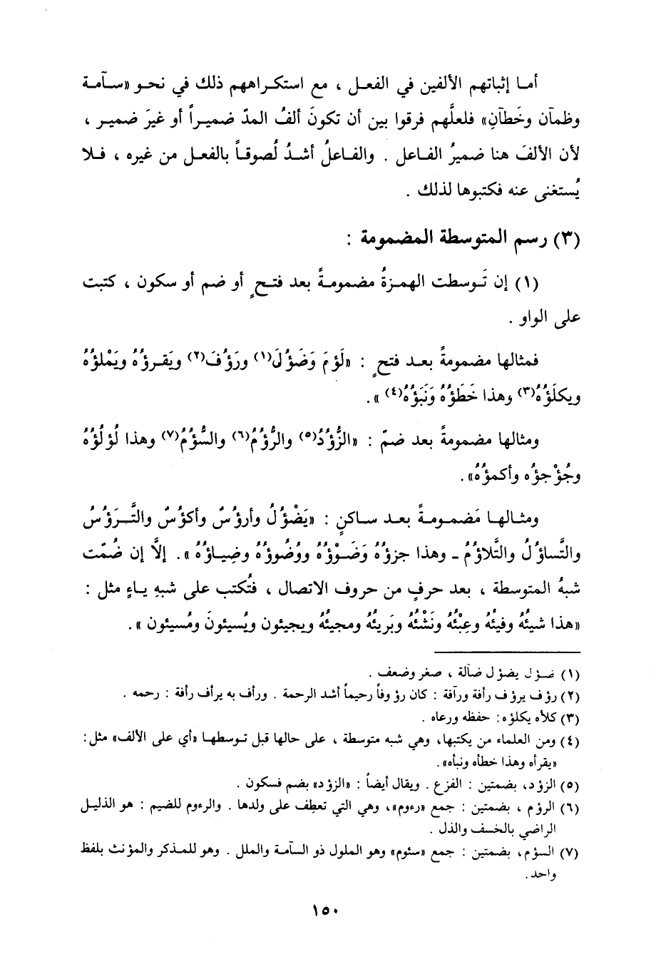 ومثالها مضمومةً بعد ضمّ "الزُّؤُدُ والرُّؤُمُ والسُّؤُمُ وهذا لُؤُلؤُه وجُؤْجؤُه وأكمؤُهُ".