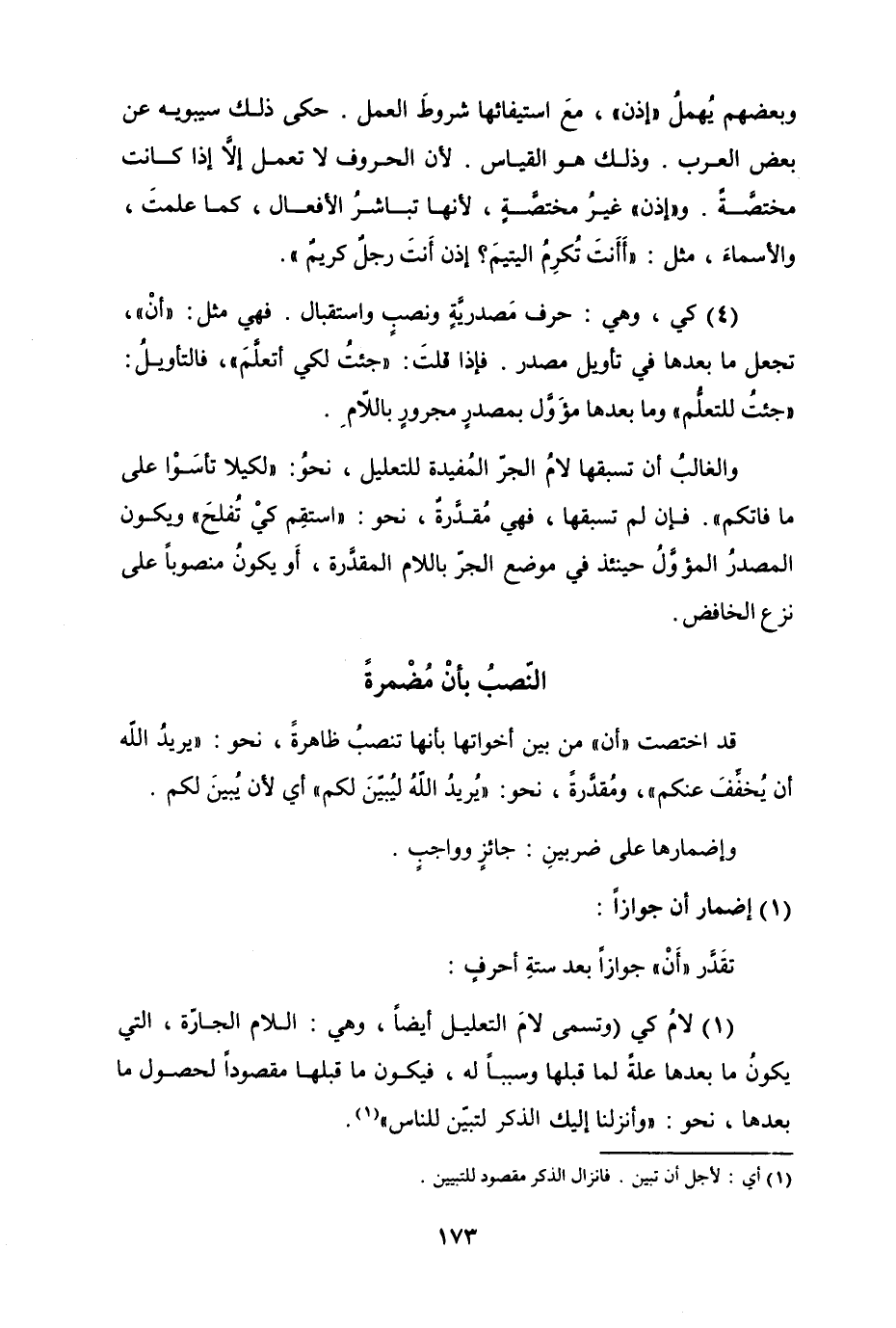 قد اختصت "أن" من بين أخواتها بأنها تنصبُ ظاهرةً، نحو "يريدُ الله أن يُخفِّفَ عنكم"، ومُقدَّرةً، نحو {يُريدُ اللهُ ليُبيّنَ لكم} أي لأن يُبينَ لكم.