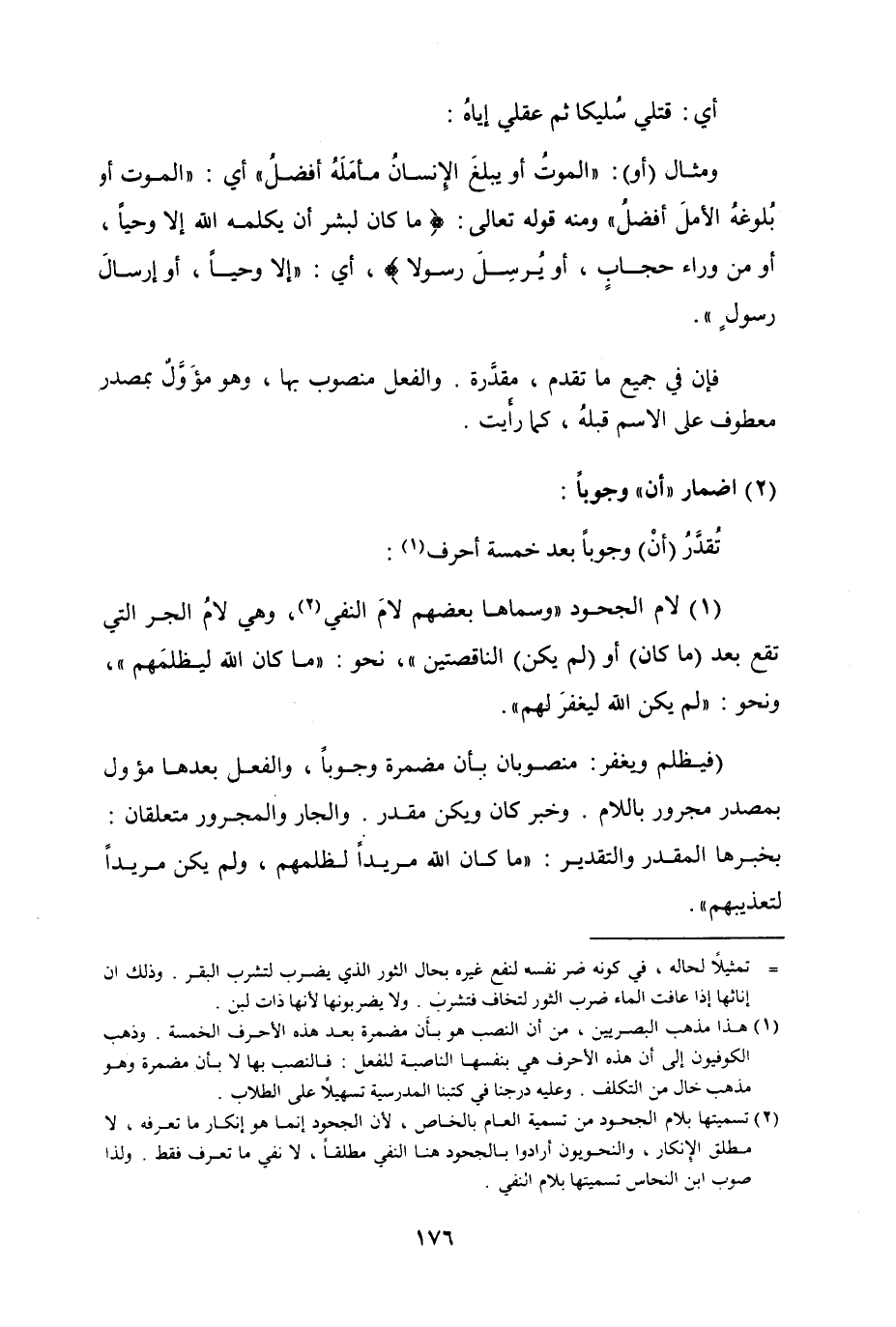 (1) لام الجحود "وسماها بعضهم لامض النفي، وهي لامُ الجر التي تقع بعد (ما كان) أو (لم يكن) الناقصتين"، نحو "ما كان الله ليظلمَهم"، ونحو {لم يكن الله ليغفرَ لهم} .