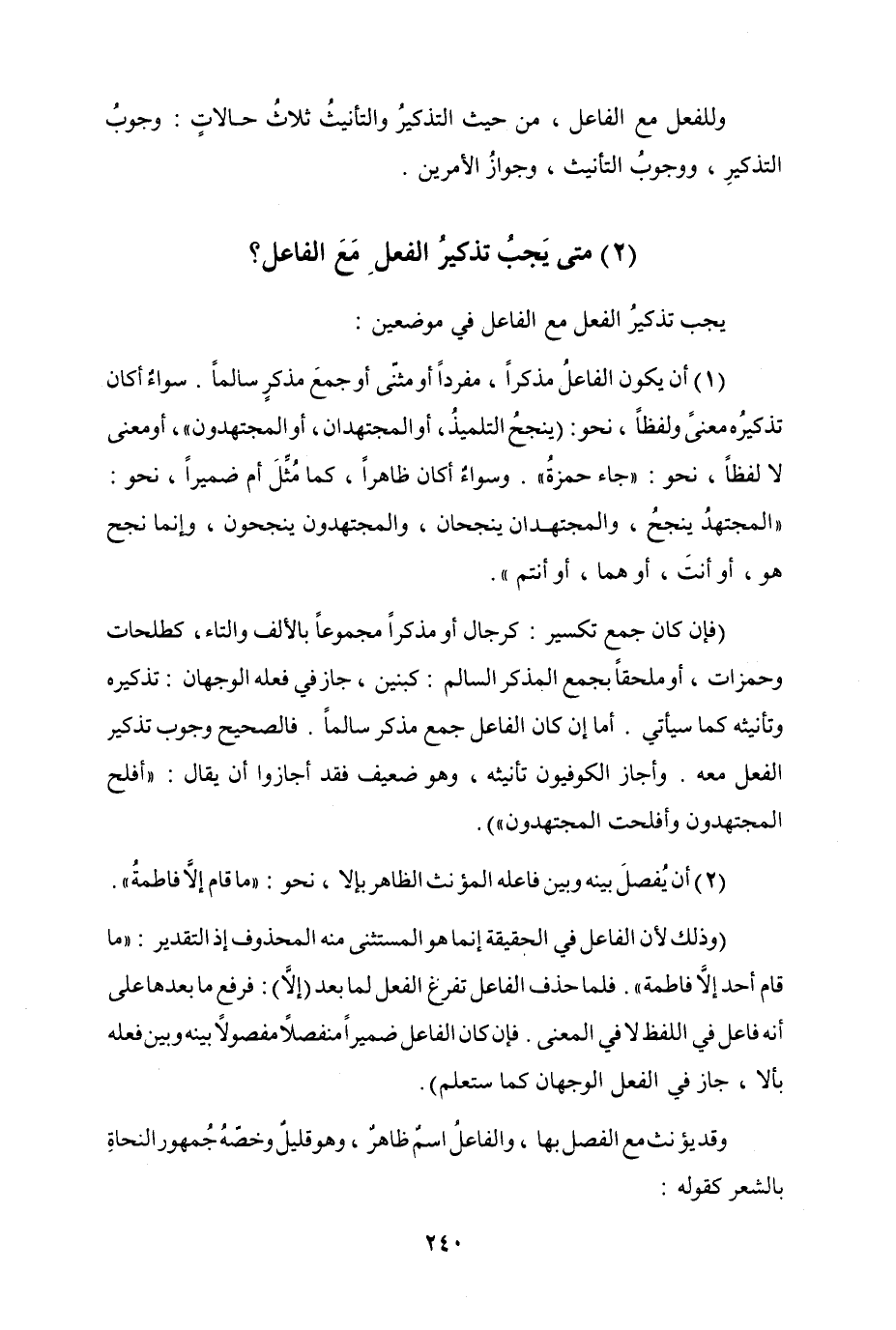 (2) متى يَجبُ تذكيرُ الفعلِ مَعَ الفاعل؟