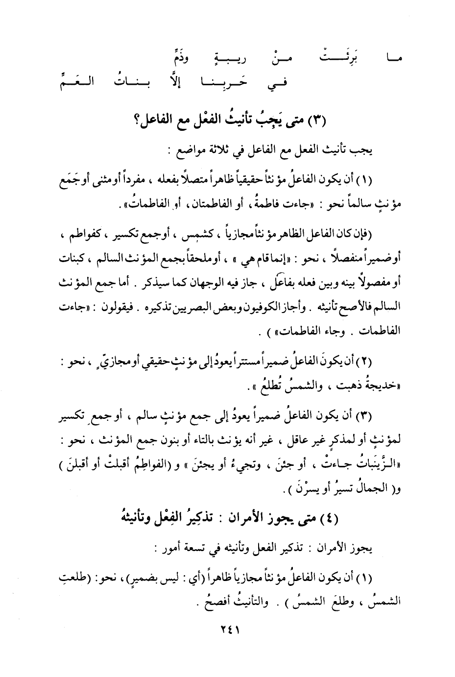 (3) متى يَجِبُ تأنيثٌ الفعْل مع الفاعل؟
