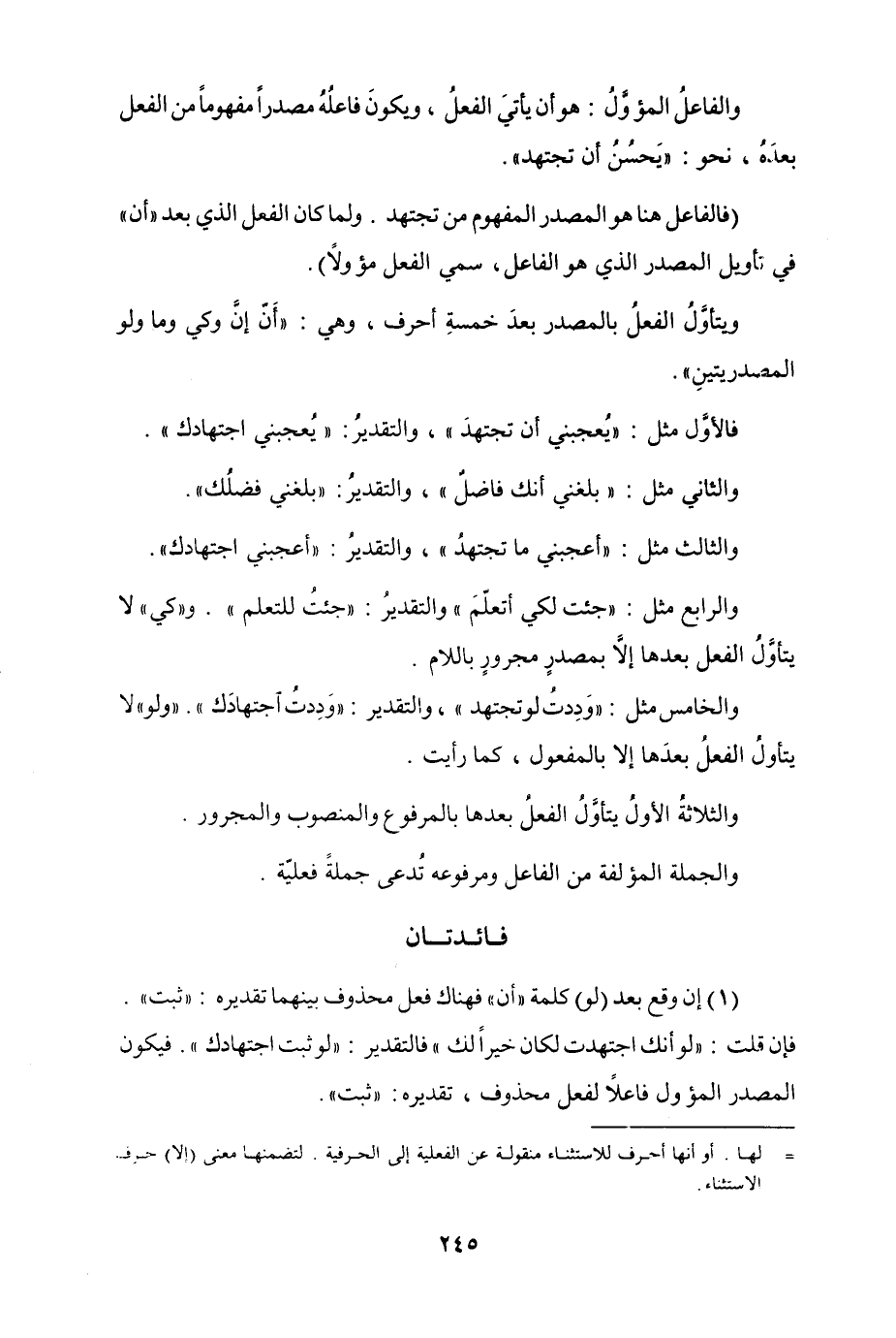 (فالفاعل هنا هو المصدر المفهوم من تجتهد. ولما كان الفعل الذي بعد "أن" في تأويل المصدر الذي هو الفاعل، سمي الفعل مؤولاً) .