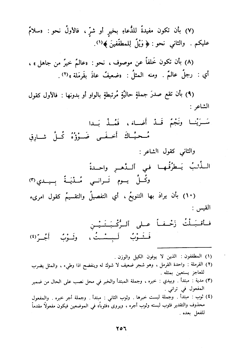 (7) بأن تكون مفيدةً للدُّعاءِ بخيرٍ مأو شرٍّ، فالاولُ نحو "سلامٌ عليكم". والثاني نحو {وَيْلٌ لِلمطفّفين} .
