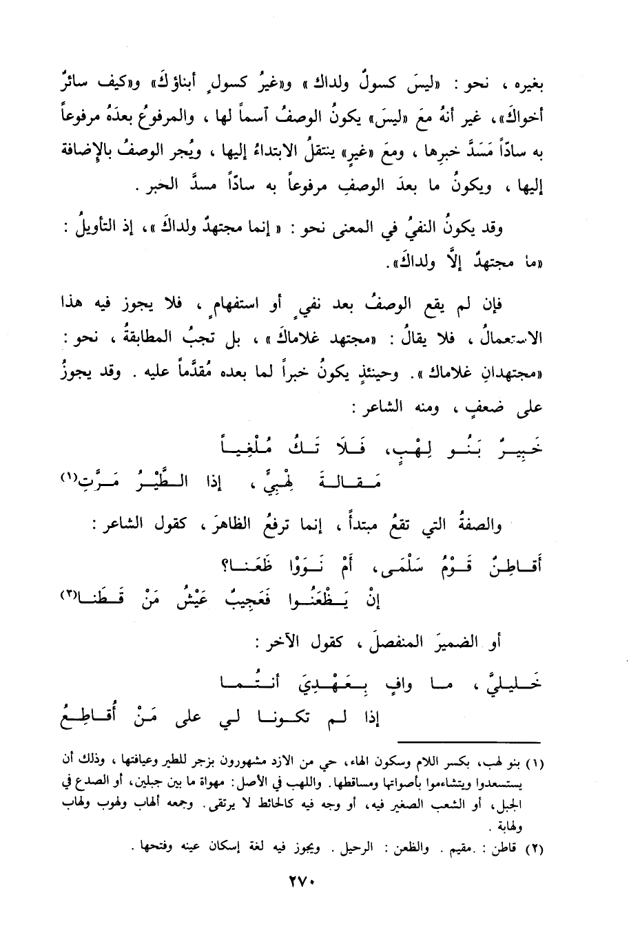 فان لم يقع الوصفُ بعد نفيٍ او استفهامٍ، فلا يجوز فيه هذا الاستعمالُ، فلا يقالُ "مجتهد غلاماكَ"، بل تجبُ المطابقةُ، نحخو "مجتهدانِ غلاماك". وحينئذٍ يكونُ خبراً لما بعده مُقدَّماً عليه. وقد يجوزُ على ضعفٍ، ومنه الشاعر [من الطويل]