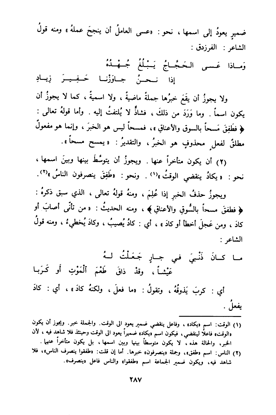 (3) ما يجوزُ فيه الوجهانِ اقترانُ خبرهِ بأنْ، وتَجردُه منها، وهي افعالُ المقارَبة، و"عسى" من افعال الرَّجاءِ، غير أنَّ الاكثرَ في "عسى وأوشكَ" ان يقترنَ خبرُهما بها، قال تعالى {عسى رَبُّكم ان يرحمَكم} ، وقال الشاعر [من الطويل]