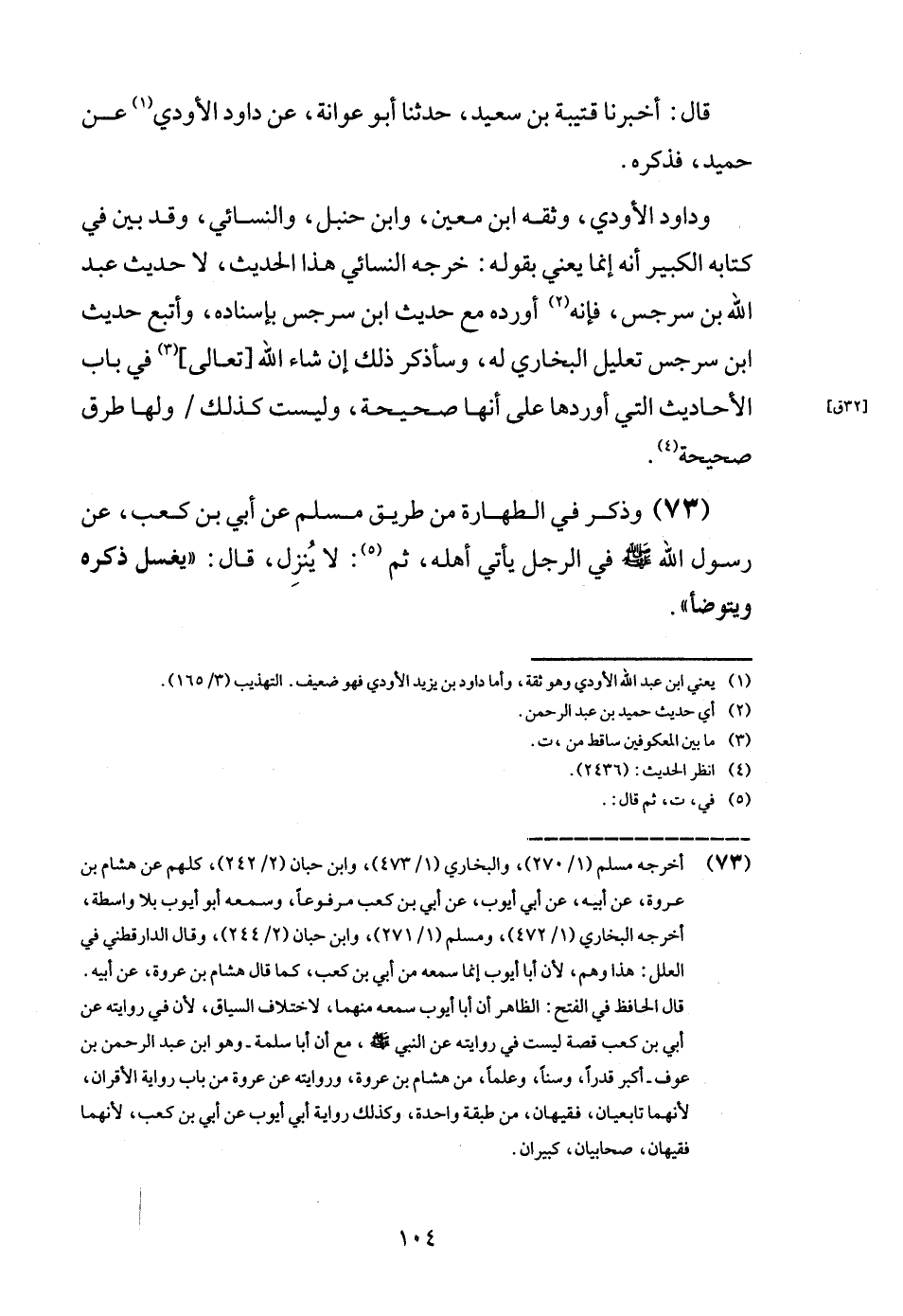 (71) وَذكر فِي الطَّهَارَة من طَرِيق مُسلم عَن أبي بن كَعْب، عَن رَسُول الله - صَلَّى اللَّهُ عَلَيْهِ وَسَلَّم َ - فِي الرجل يَأْتِي أَهله، ثمَّ: لَا ينزل، قَالَ: " يغسل ذكره وَيتَوَضَّأ ".