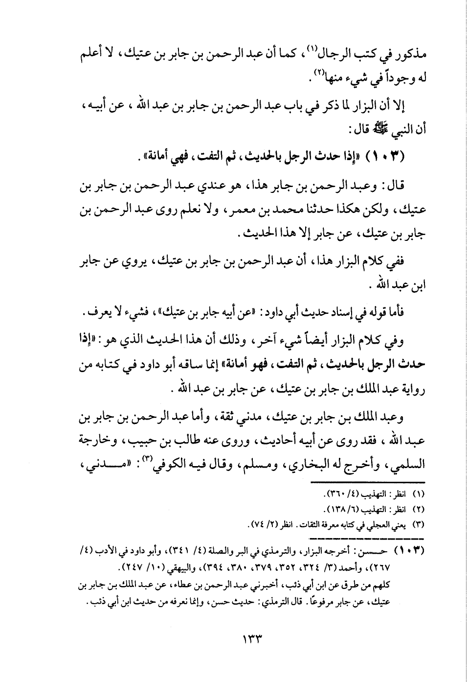 (103) " إِذا حدث الرجل بِالْحَدِيثِ، ثمَّ الْتفت، فَهِيَ أَمَانَة ".