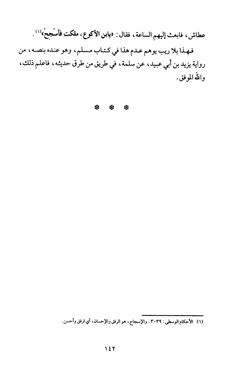 عطاش، فَابْعَثْ إِلَيْهِم السَّاعَة، فَقَالَ: " يَا بن الْأَكْوَع، ملكت فَأَسْجِحْ ".