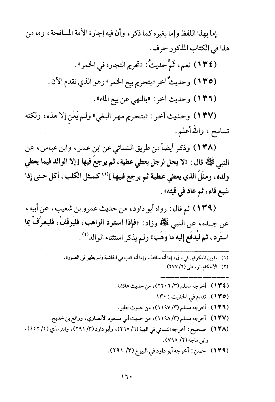(139) ثمَّ قَالَ: رَوَاهُ أَبُو دَاوُد، من حَدِيث عَمْرو بن شُعَيْب، عَن أَبِيه عَن جده، عَن النَّبِي - صَلَّى اللَّهُ عَلَيْهِ وَسَلَّم َ - وَزَاد: فَإِذا اسْتردَّ الْوَاهِب، فليوقف، فليعرف بِمَا اسْتردَّ، ثمَّ ليدفع إِلَيْهِ مَا وهب " وَلم يذكر اسْتثِْنَاء الْوَالِد.