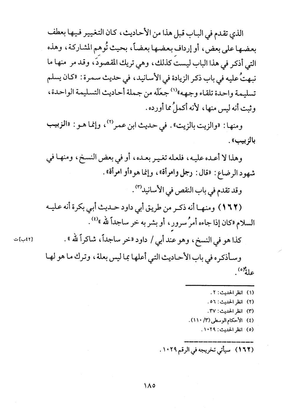 (162) وَمِنْهَا أَنه ذكر من طَرِيق أبي دَاوُد حَدِيث أبي بكرَة أَنه عَلَيْهِ السَّلَام، " كَانَ إِذا جَاءَهُ أَمر سرُور، أَو بشر بِهِ خر سَاجِدا لله ".