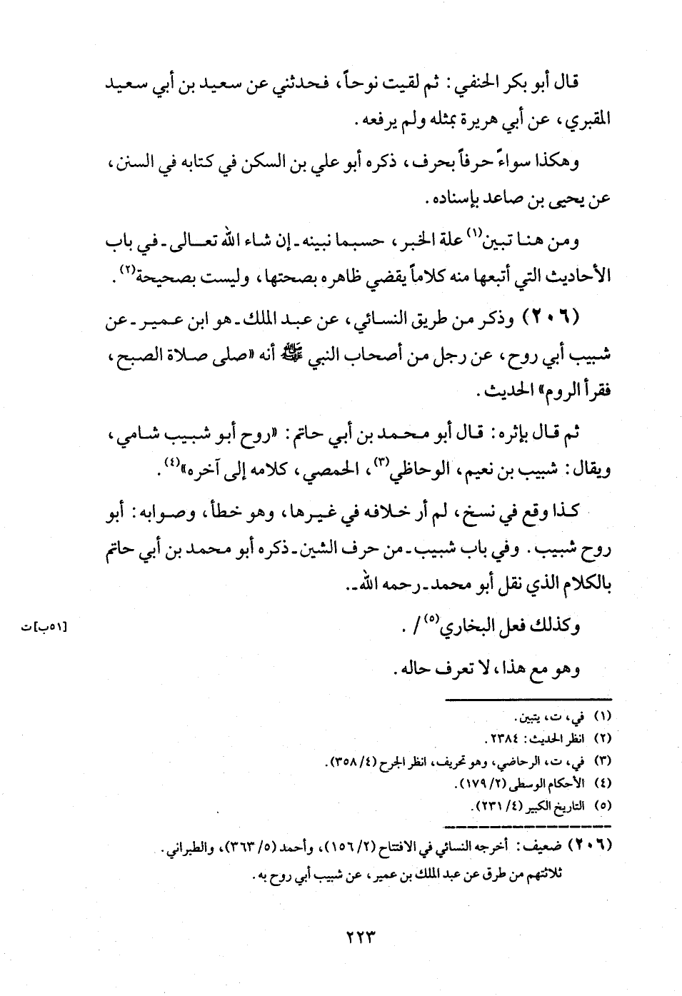 (206) وَذكر من طَرِيق النَّسَائِيّ، عَن عبد الْملك - هُوَ ابْن عُمَيْر - عَن شبيب أبي روح، عَن رجل من أَصْحَاب النَّبِي - صَلَّى اللَّهُ عَلَيْهِ وَسَلَّم َ - أَنه " صلى صَلَاة الصُّبْح، فَقَرَأَ الرّوم " الحَدِيث.