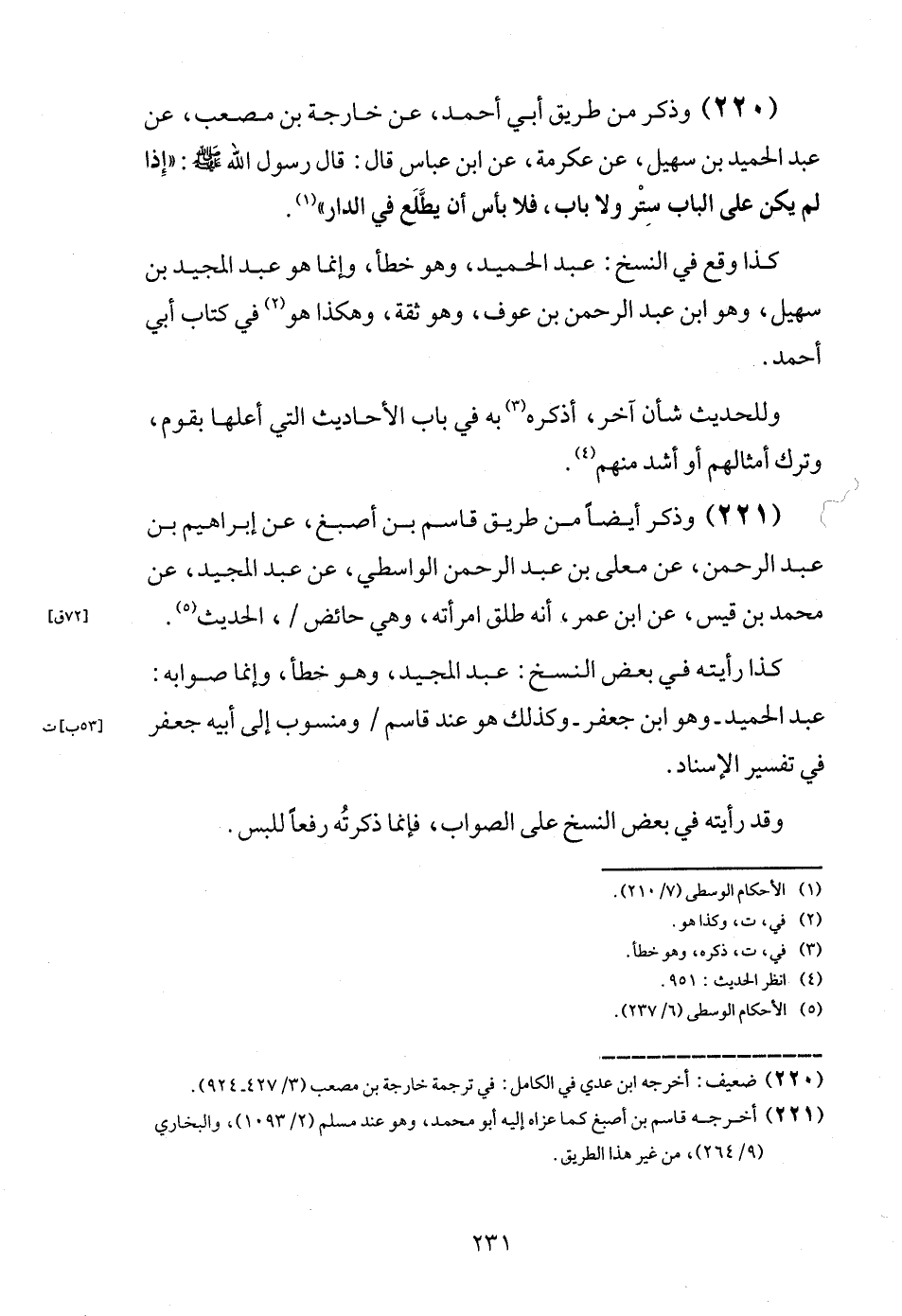 (221) وَذكر أَيْضا من طَرِيق قَاسم بن أصبغ، عَن إِبْرَاهِيم بن عبد الرَّحْمَن، عَن مُعلى بن عبد الرَّحْمَن الوَاسِطِيّ، عَن عبد الْمجِيد، عَن مُحَمَّد بن قيس، عَن ابْن عمر، أَنه طلق امْرَأَته، وَهِي حَائِض /، الحَدِيث.