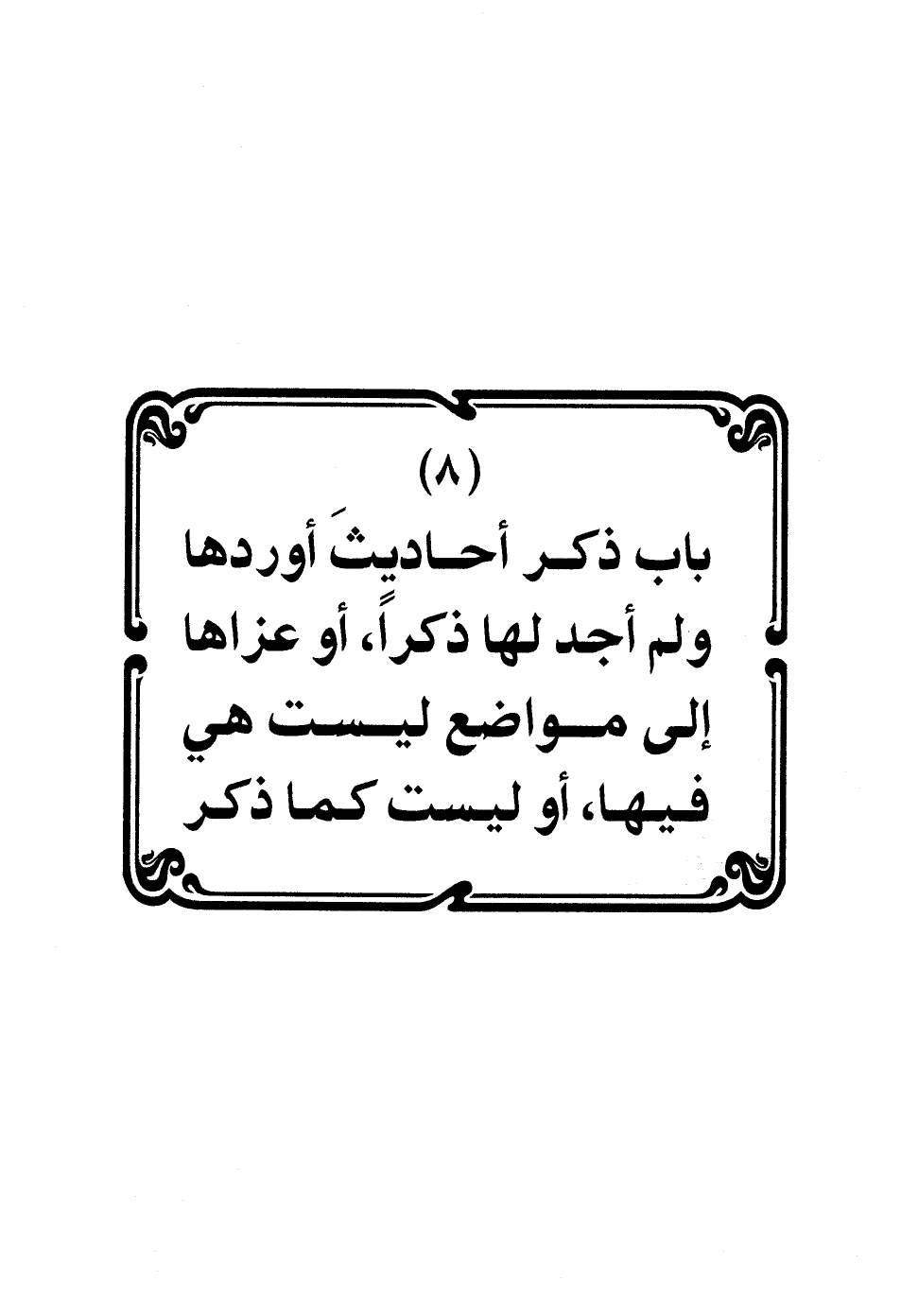 (8) بَاب ذكر أَحَادِيث أوردهَا وَلم أجد لَهَا ذكرا، أَو عزاها إِلَى مَوَاضِع لَيست هِيَ فِيهَا، أَو لَيست كَمَا ذكر