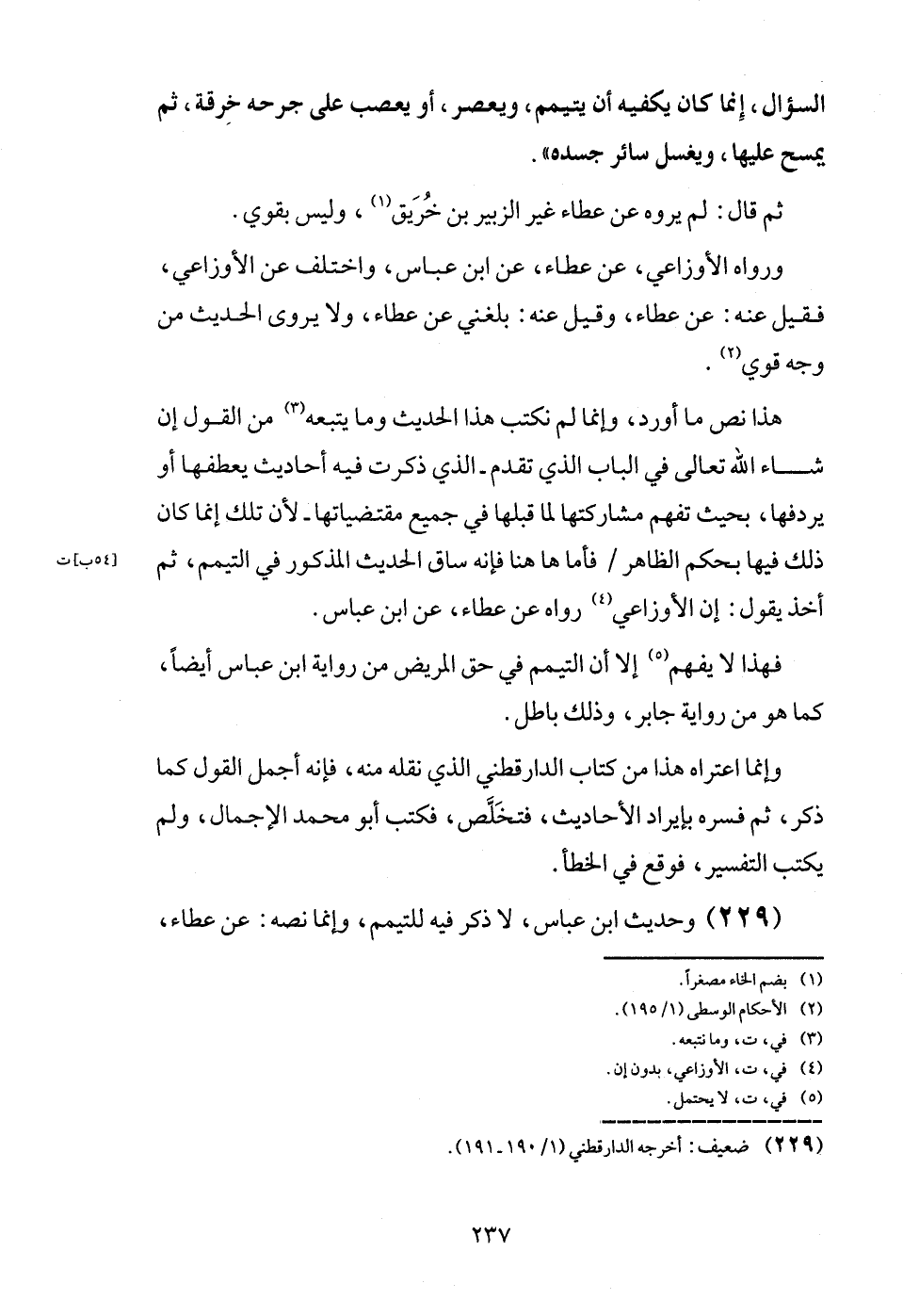 (229) وَحَدِيث ابْن عَبَّاس، لَا ذكر فِيهِ للتيمم، وَإِنَّمَا نَصه: عَن عَطاء،