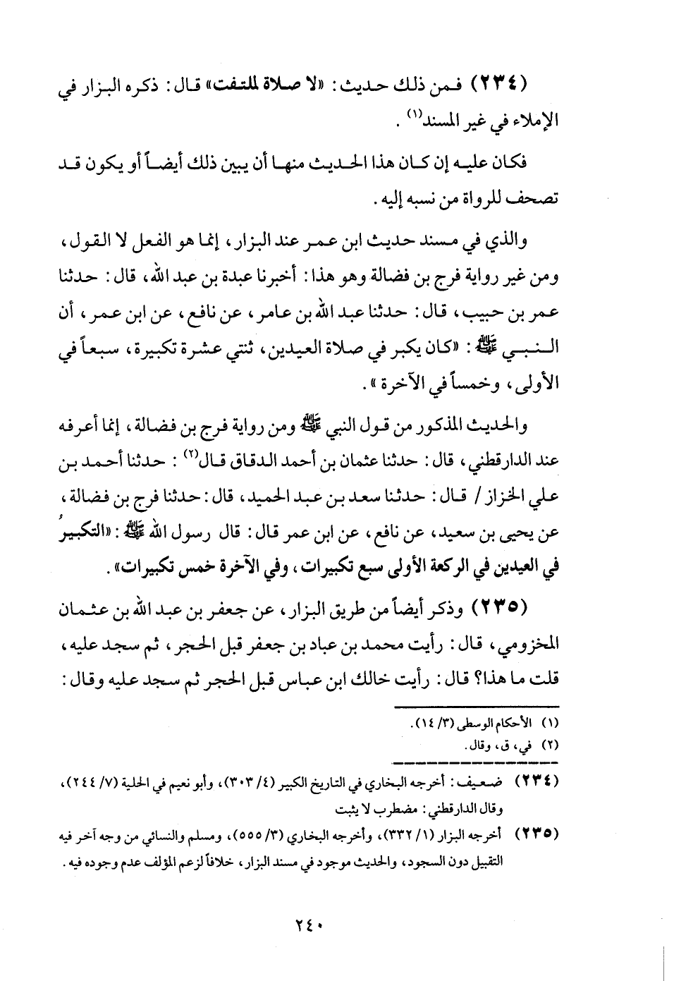 (234) فَمن ذَلِك حَدِيث: " لَا صَلَاة لملتفت " قَالَ: ذكره الْبَزَّار فِي الْإِمْلَاء فِي غير الْمسند.