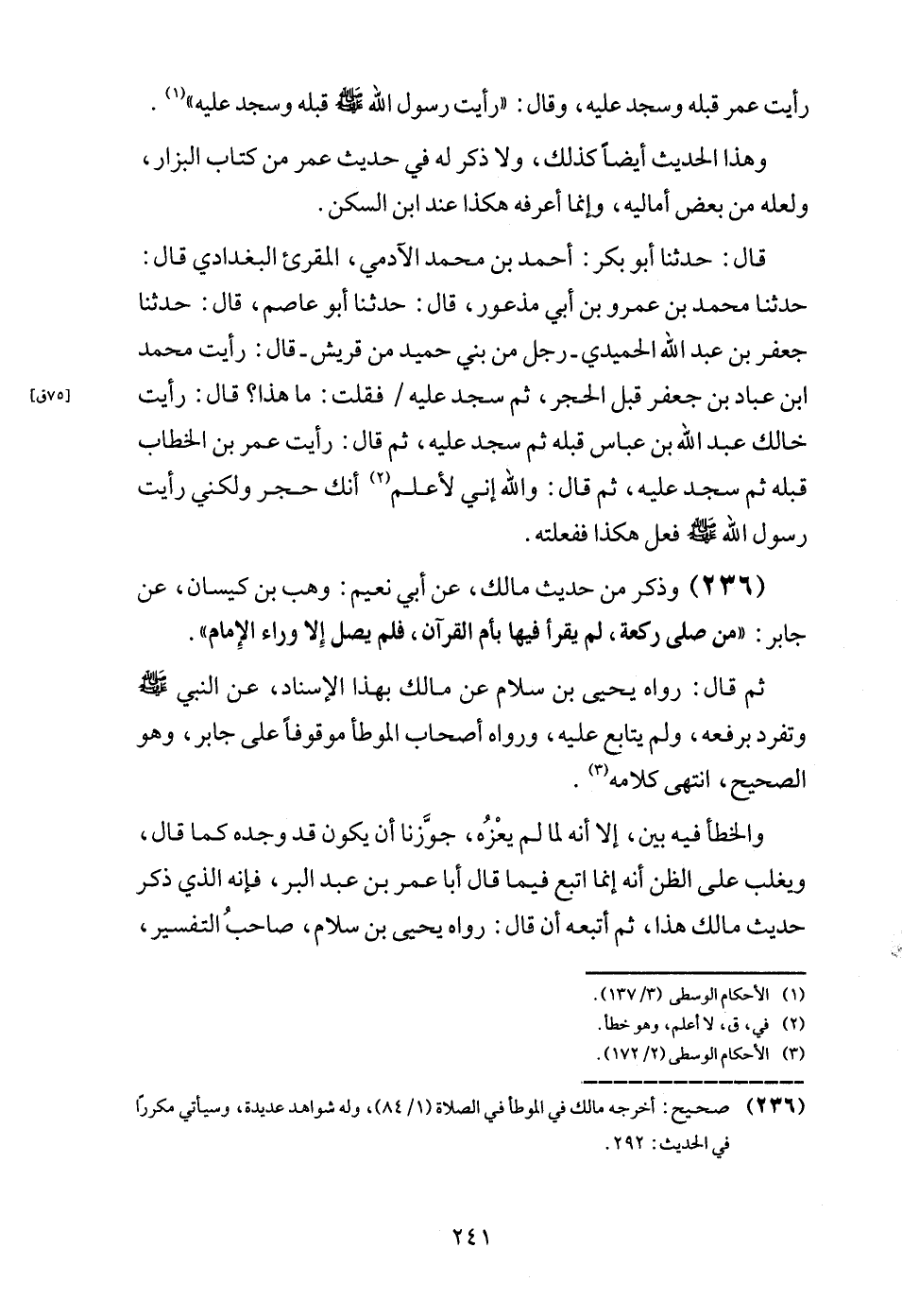 (236) (وَذكر من حَدِيث مَالك، عَن أبي نعيم: وهب بن كيسَان، عَن جَابر " من صلى رَكْعَة، لم يقْرَأ فِيهَا بِأم الْقُرْآن، فَلم يصل إِلَّا وَرَاء الإِمَام ".