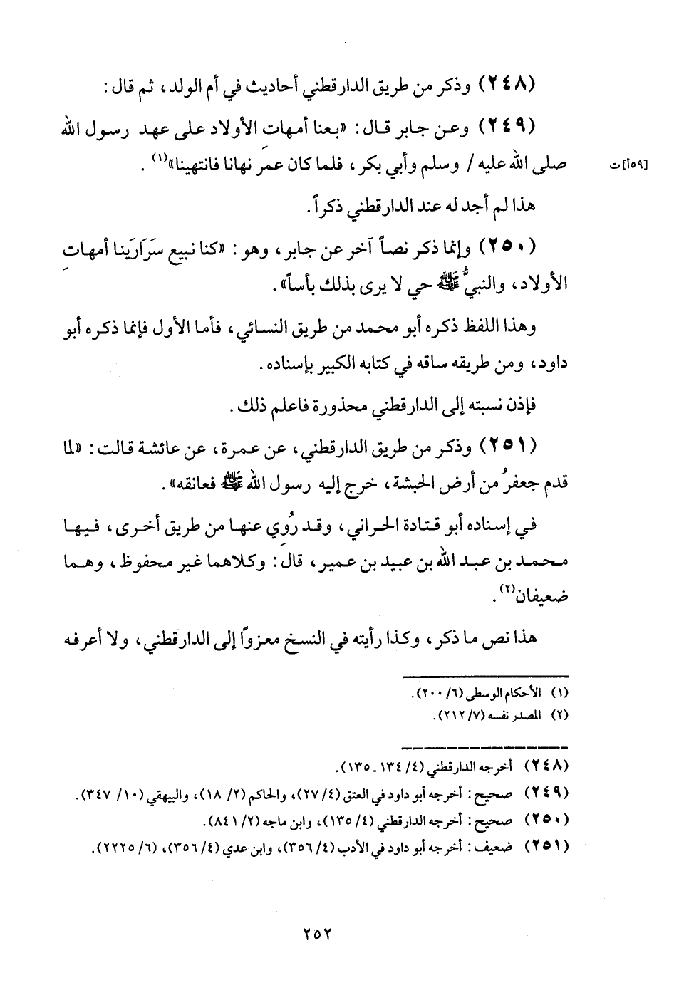 (248) وَذكر من طَرِيق الدَّارَقُطْنِيّ أَحَادِيث فِي أم الْوَلَد، ثمَّ قَالَ: