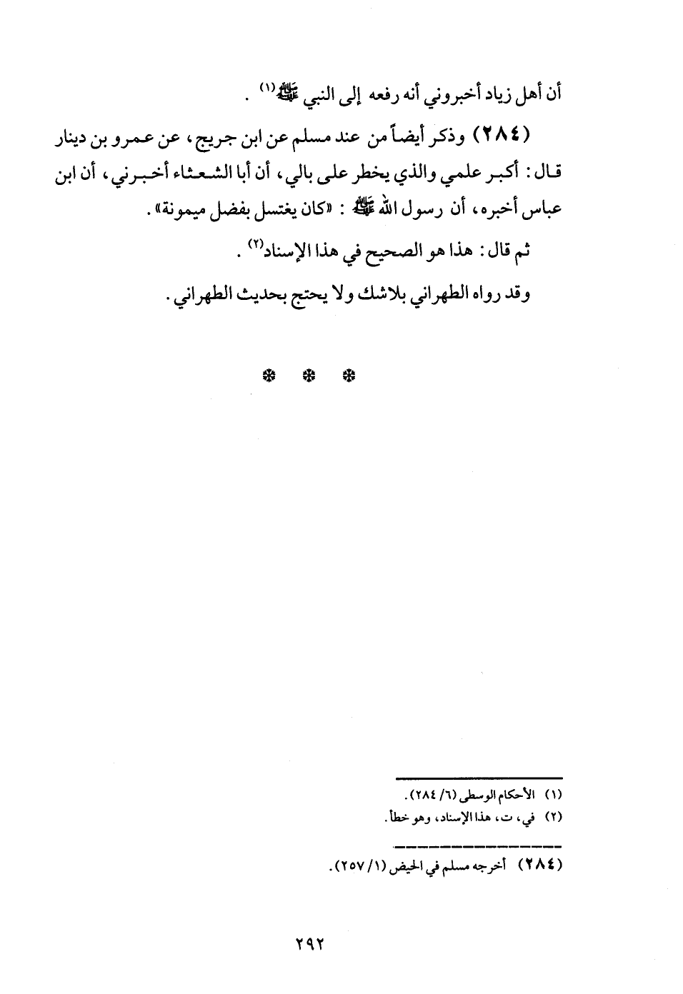 (284) وَذكر أَيْضا من عِنْد مُسلم عَن ابْن جريح، عَن عَمْرو بن دِينَار قَالَ: أكبر علمي وَالَّذِي يخْطر على بالي، أَن أَبَا الشعْثَاء أَخْبرنِي، أَن ابْن عَبَّاس أخبرهُ، أَن رَسُول الله - صَلَّى اللَّهُ عَلَيْهِ وَسَلَّم َ -: " كَانَ يغْتَسل بِفضل مَيْمُونَة ".