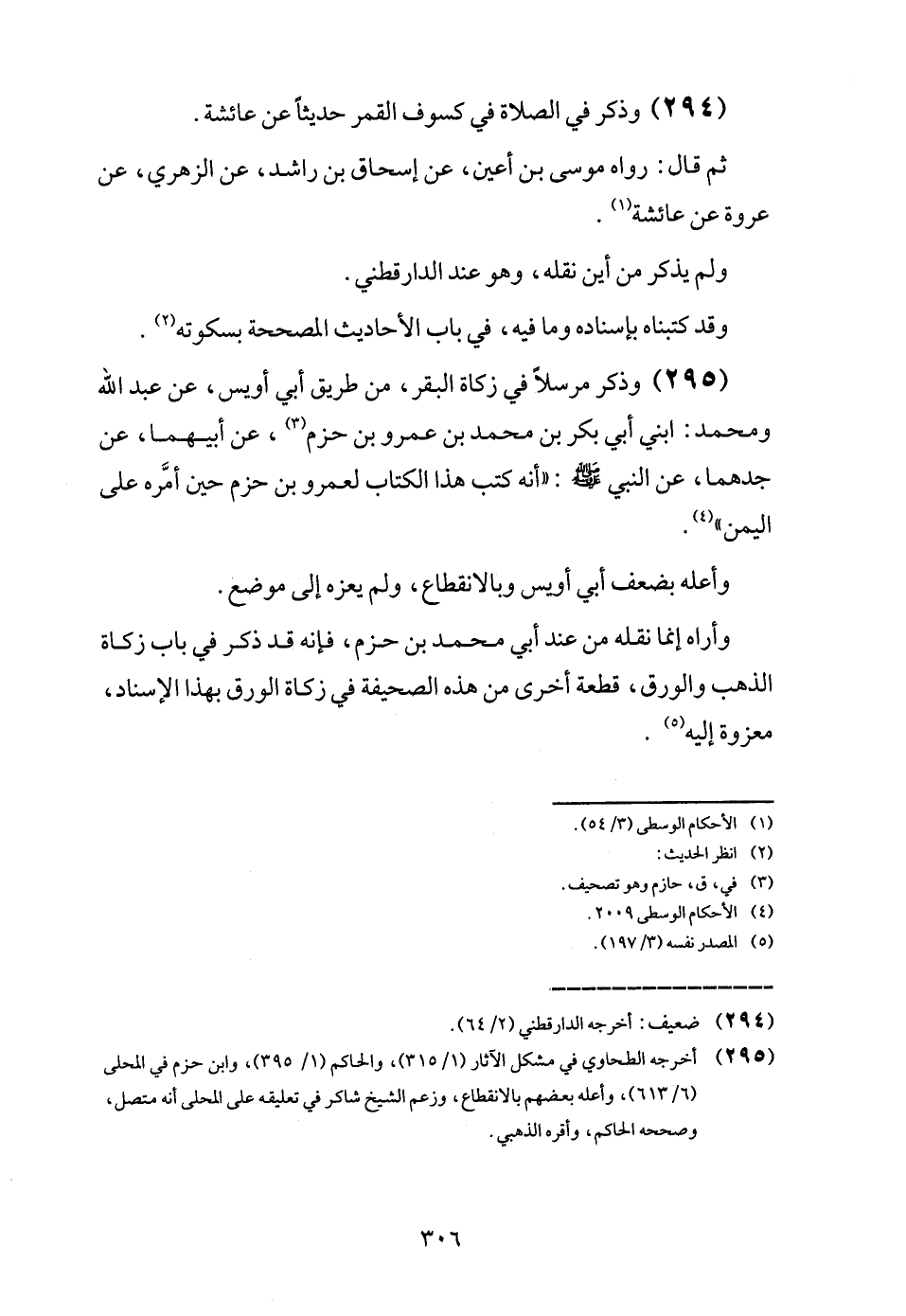 (295) وَذكر مُرْسلا فِي زَكَاة الْبَقر، من طَرِيق أبي أويس، عَن عبد الله وَمُحَمّد: ابْني أبي بكر بن مُحَمَّد بن عَمْرو بن حزم، عَن أَبِيهِمَا، عَن جدهما، عَن النَّبِي - صَلَّى اللَّهُ عَلَيْهِ وَسَلَّم َ -: " أَنه كتب هَذَا الْكتاب لعَمْرو بن حزم حِين أمره على الْيمن ".