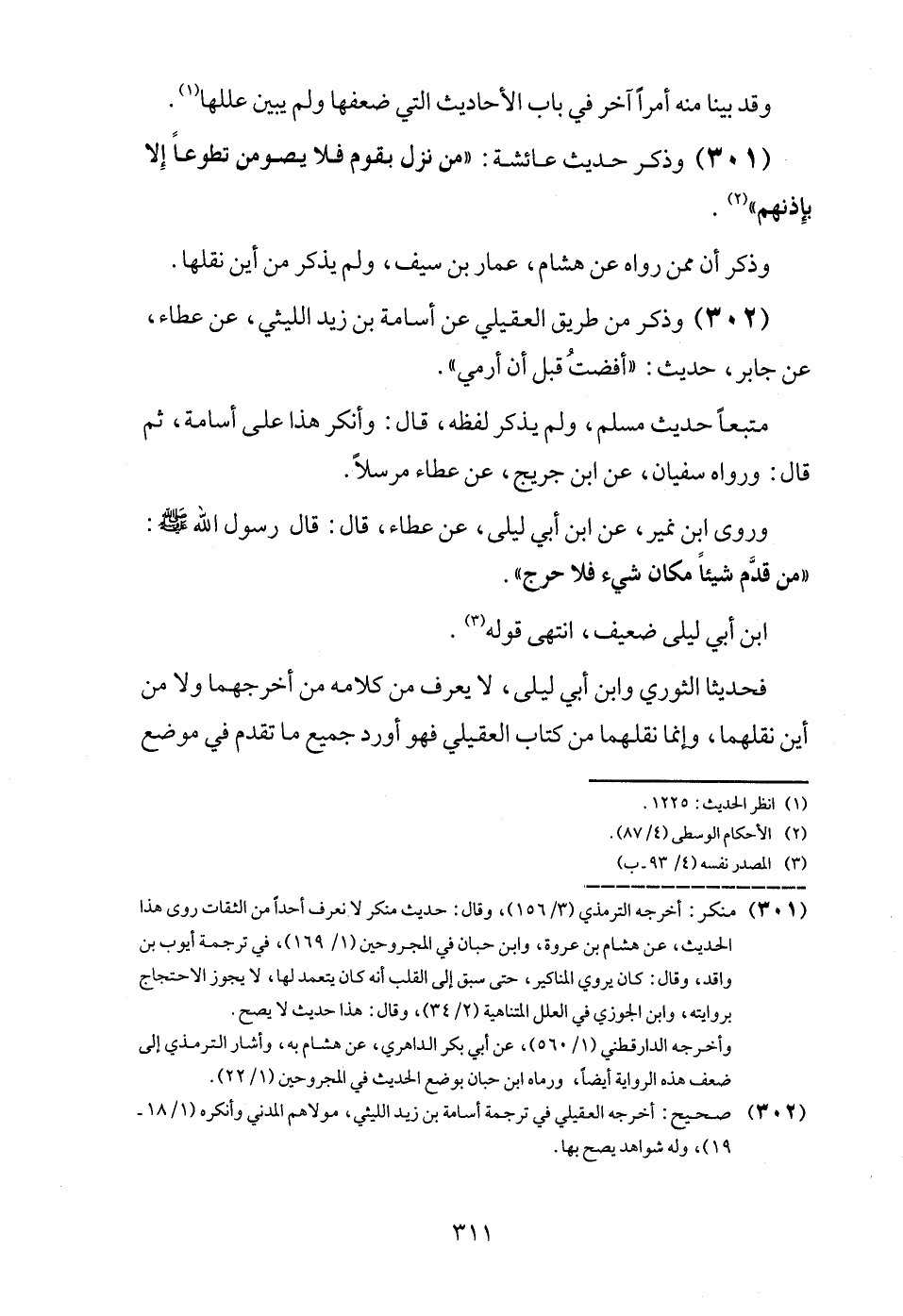 (301) وَذكر حَدِيث عَائِشَة: " من نزل بِقوم فَلَا يصومن تَطَوّعا إِلَّا بإذنهم ".