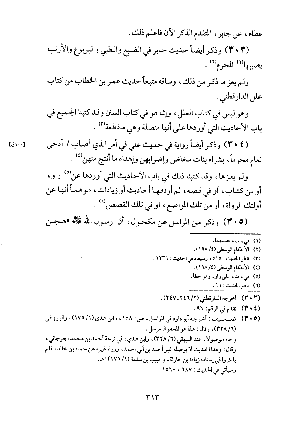 (305) وَذكر من المراسل عَن مَكْحُول، أَن رَسُول الله - صَلَّى اللَّهُ عَلَيْهِ وَسَلَّم َ - " هجن