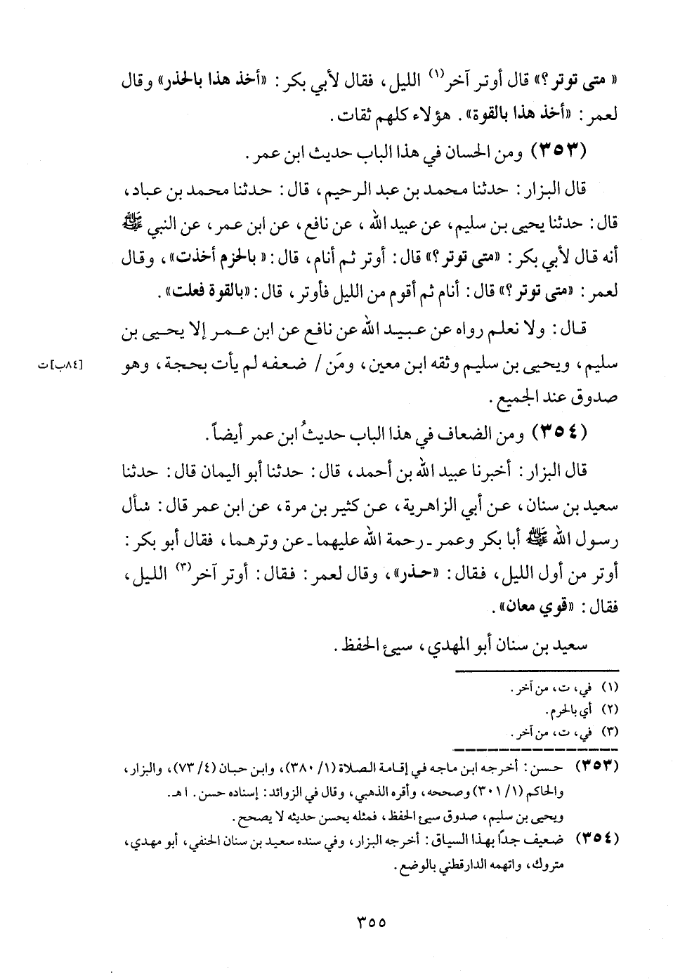 (354) وَمن الضِّعَاف فِي هَذَا الْبَاب حَدِيث ابْن عمر أَيْضا.