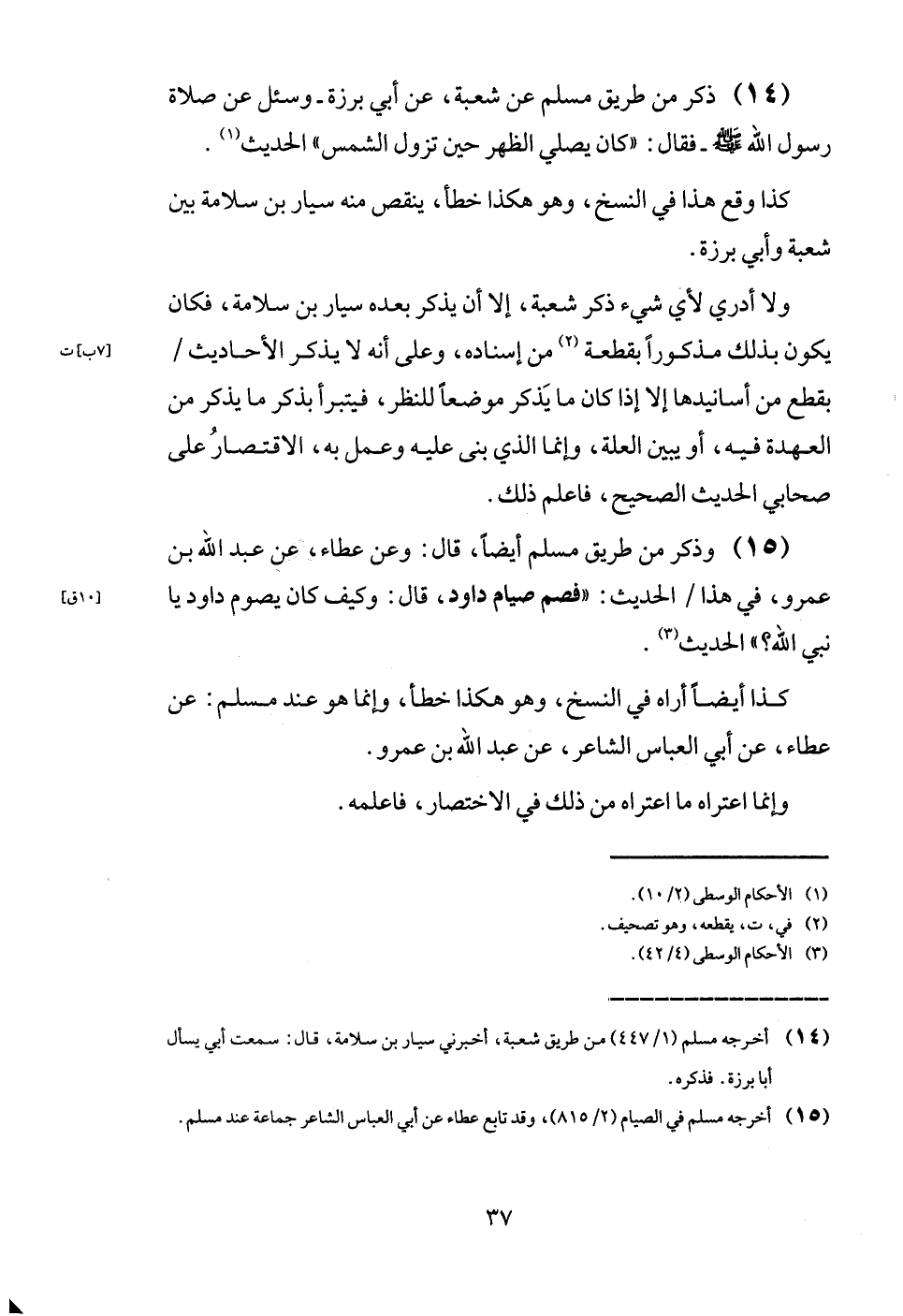 وَلَا أَدْرِي لأي شَيْء ذكر شُعْبَة، إِلَّا أَن يذكر بعده سيار بن سَلامَة، فَكَانَ يكون بذلك مَذْكُورا بِقِطْعَة من إِسْنَاده، وعَلى أَنه لَا يذكر الْأَحَادِيث / بِقطع من أسانيدها إِلَّا إِذا كَانَ مَا يذكر موضعا للنَّظَر، فيتبرأ بِذكر مَا يذكر من الْعهْدَة فِيهِ، أَو يبين الْعلَّة، وَإِنَّمَا الَّذِي بنى عَلَيْهِ وَعمل بِهِ، الِاقْتِصَار على صَحَابِيّ الحَدِيث الصَّحِيح، فَاعْلَم ذَلِك.