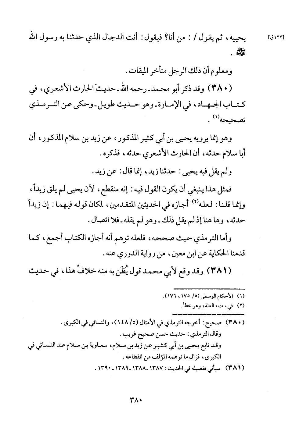 (380) وَقد ذكر أَبُو مُحَمَّد - رَحمَه الله - حَدِيث الْحَارِث الْأَشْعَرِيّ، فِي كتاب الْجِهَاد، فِي الْإِمَارَة - وَهُوَ حَدِيث طَوِيل - وَحكى عَن التِّرْمِذِيّ تَصْحِيحه.
