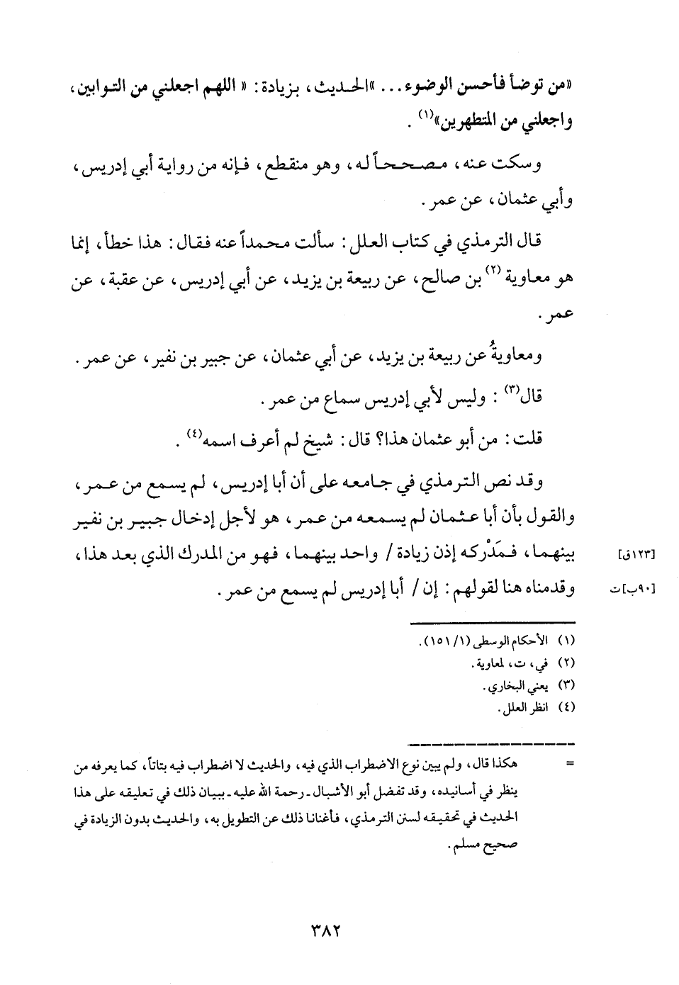 وَقد نَص التِّرْمِذِيّ فِي جَامعه على أَن أَبَا إِدْرِيس، لم يسمع من عمر، وَالْقَوْل بِأَن أَبَا عُثْمَان لم يسمعهُ من عمر، هُوَ لأجل إِدْخَال جُبَير بن نفير بَينهمَا، فمدركه إِذن زِيَادَة / وَاحِدَة بَينهمَا، فَهُوَ من الْمدْرك الَّذِي بعد هَذَا، وقدمناه هُنَا لقَولهم: إِن / أَبَا إِدْرِيس لم يسمع من عمر.