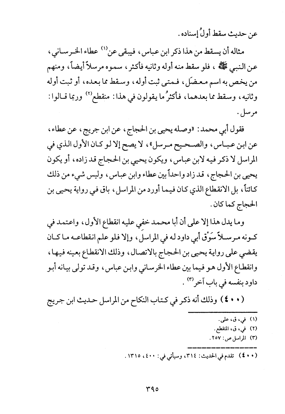 (400) وَذَلِكَ أَنه ذكر فِي كتاب النِّكَاح من المراسل حَدِيث ابْن جريج
