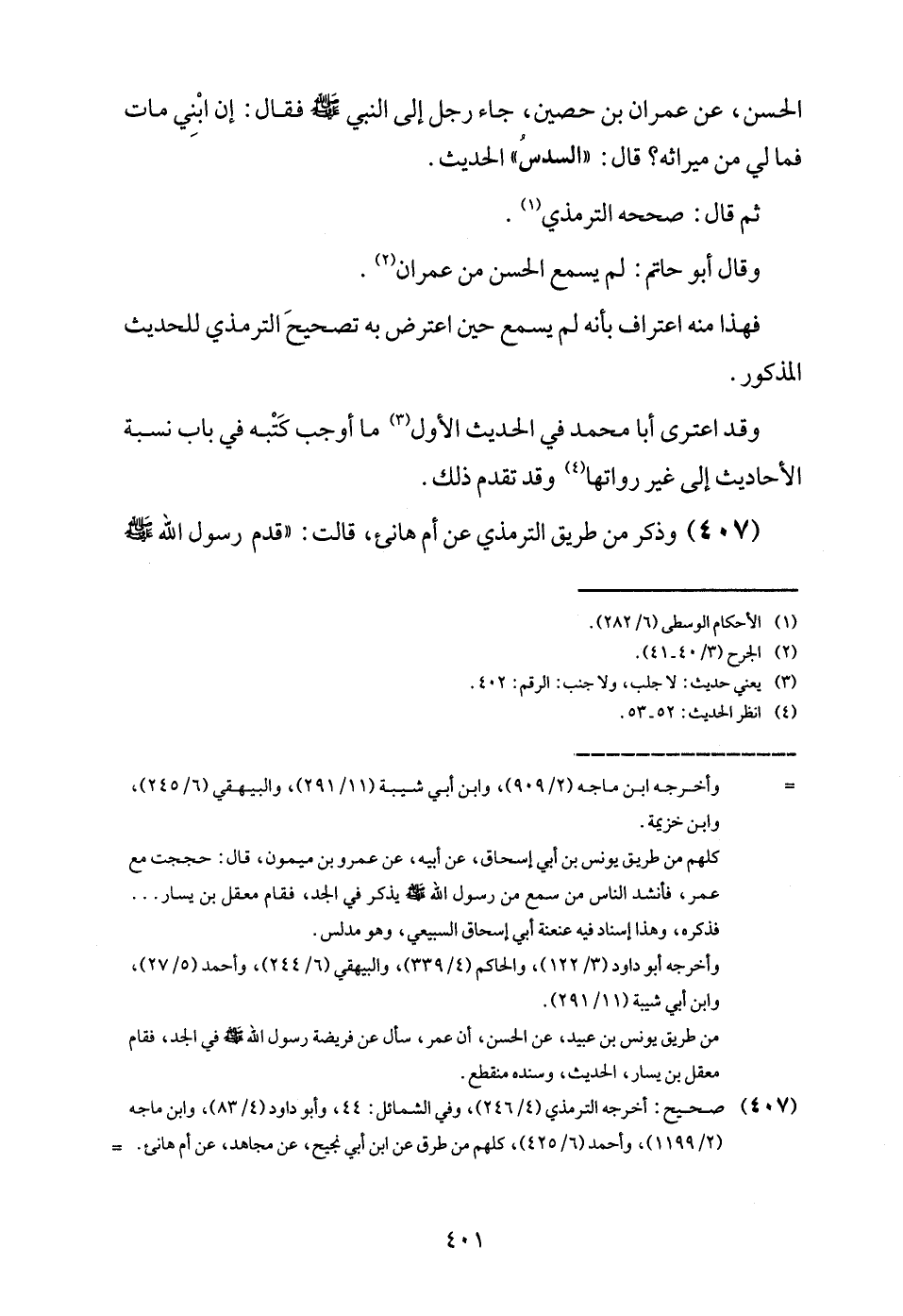 (407) وَذكر من طَرِيق التِّرْمِذِيّ عَن أم هَانِئ، قَالَت: " قدم رَسُول الله - صَلَّى اللَّهُ عَلَيْهِ وَسَلَّم َ -